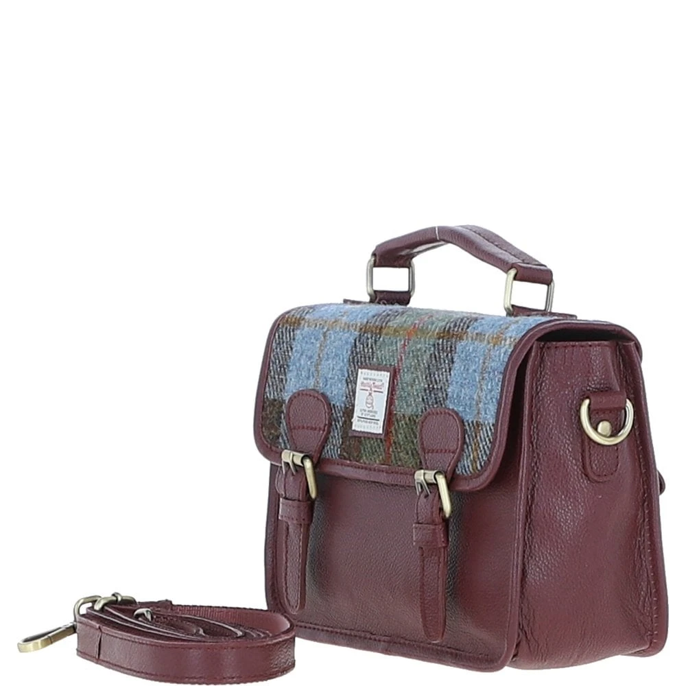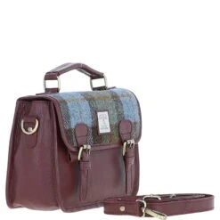 Ashwood Leather x Harris Tweed Satchel Bag Wine/Mcload: TW-68-17-WM