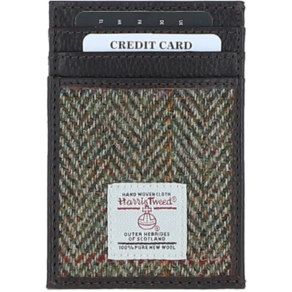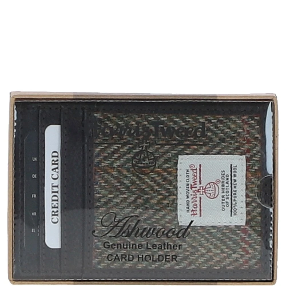 Ashwood Leather x Harris Tweed Stylish Flat Card Holder Brown/Green: TW-52-09-BG