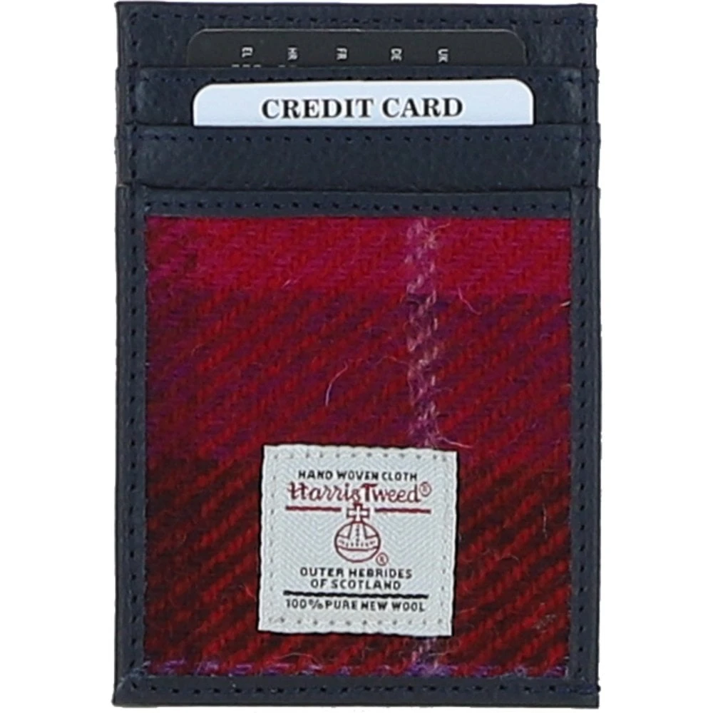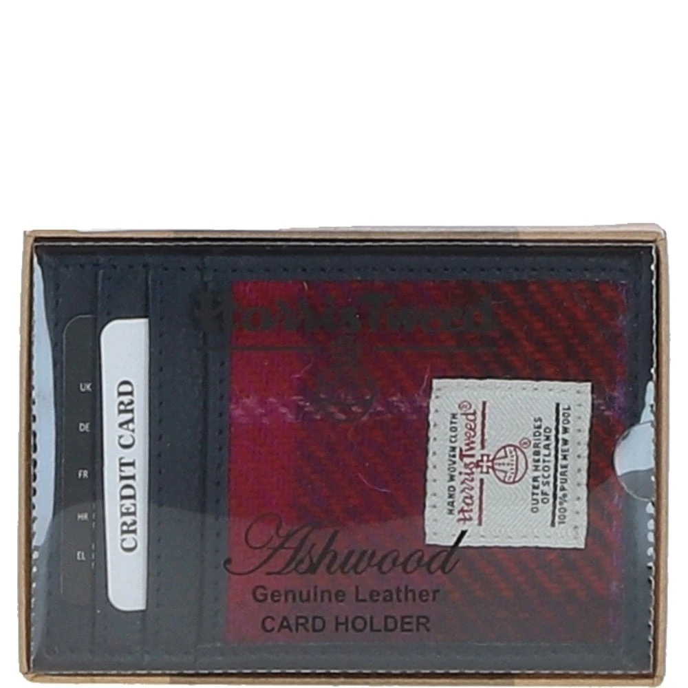 Ashwood Leather x Harris Tweed Stylish Flat Card Holder Navy/Pink: TW-52-06-NP