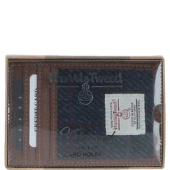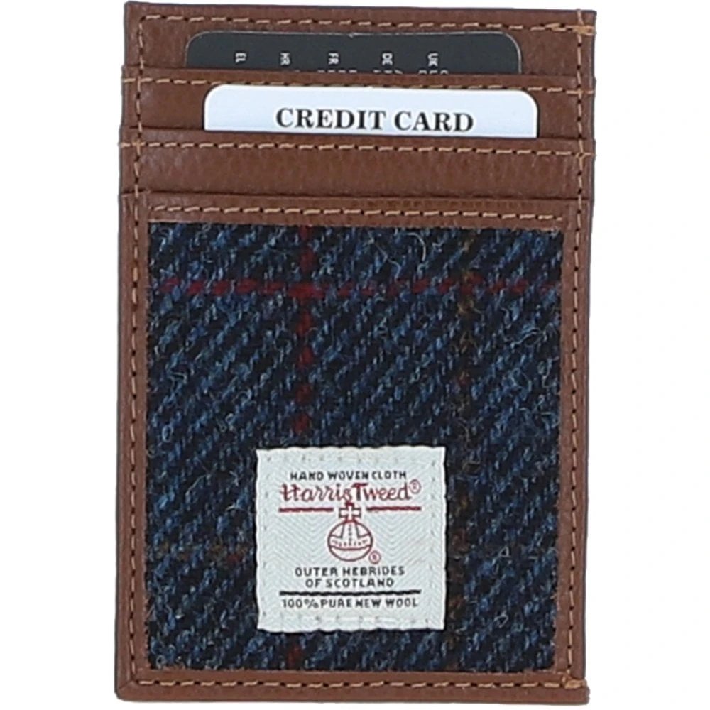 Ashwood Leather x Harris Tweed Stylish Flat Card Holder Tan/Navy: TW-52-11-TN