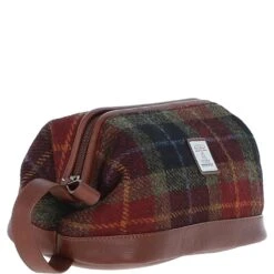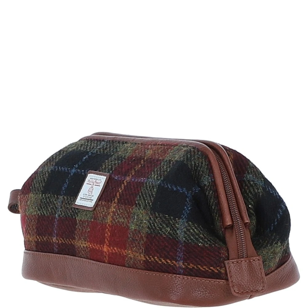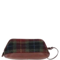 Ashwood Leather x Harris Tweed Unisex Washbag Tan/Green/Red: TW-40-08-TR