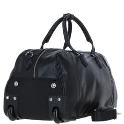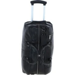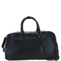 This luxurious leather wheeled duffle bag combines elegance and functionality, perfect for weekend getaways or business travel. Crafted from premium leather, it features a spacious main compartment, a sturdy telescopic handle, and smooth-rolling wheels for easy mobility. The bag is adorned with silver-coloured hardware, adding a sophisticated touch to its design. It also includes an external zip compartment for quick access and secure storage.