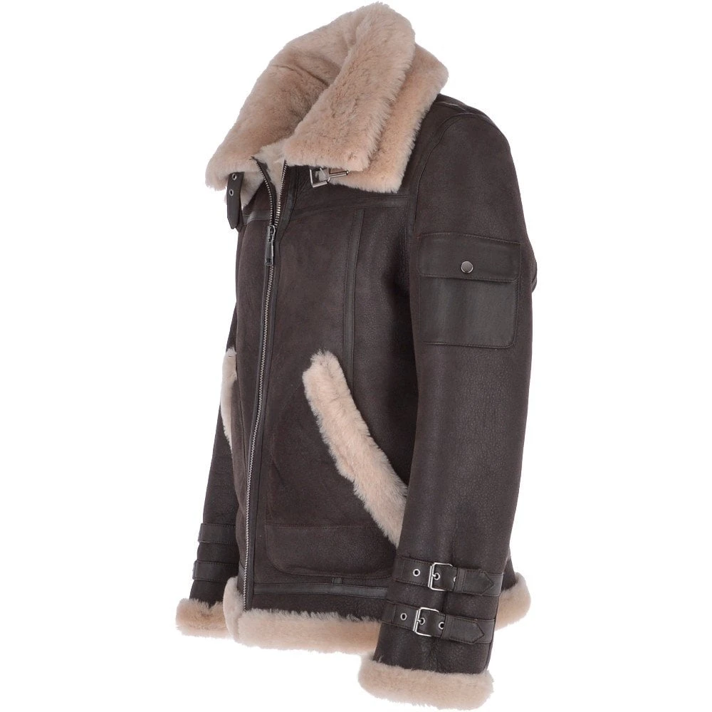 Mens Double Collar Soft Sheepskin Pilot Jacket : Bronn