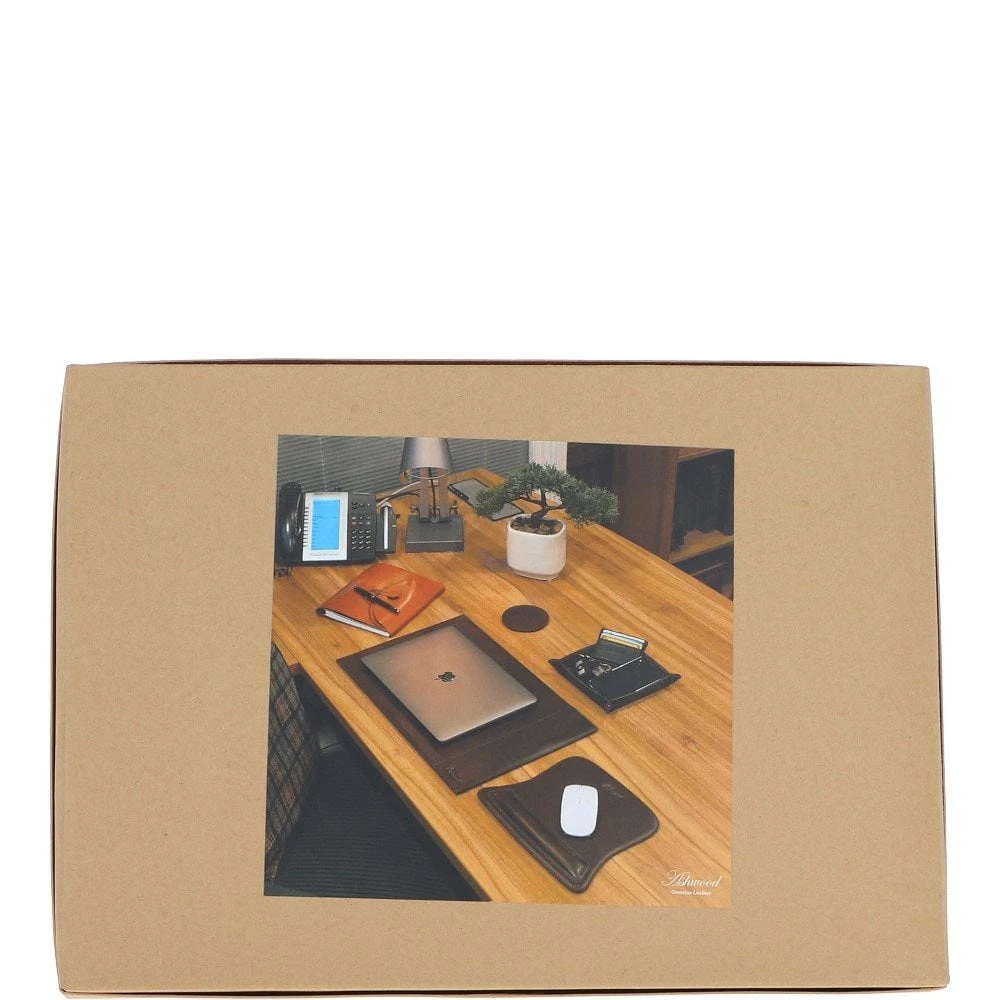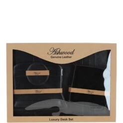 Ashwood Luxury Leather Desk Set Black: GS-1298