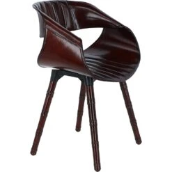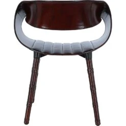 The silhouette of the Nougat Chair is a masterpiece of design, boasting a gracefully curved backrest that seamlessly transitions into the sturdy, yet slender legs. The legs themselves are a nod to classic craftsmanship, detailed with subtle bamboo-like joints that suggest an organic sophistication.