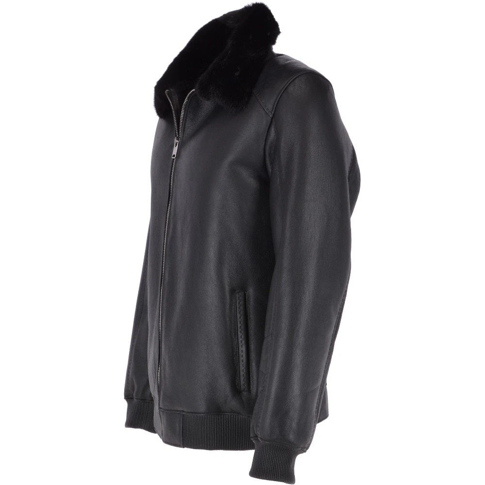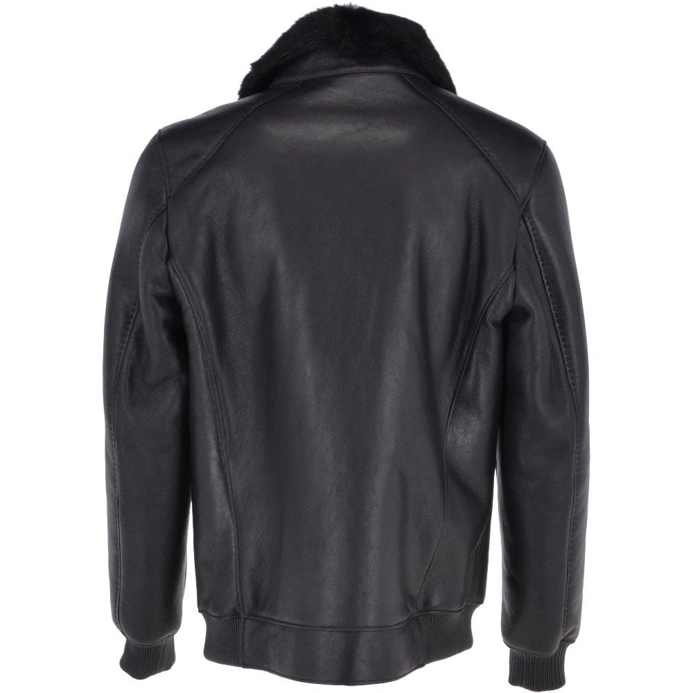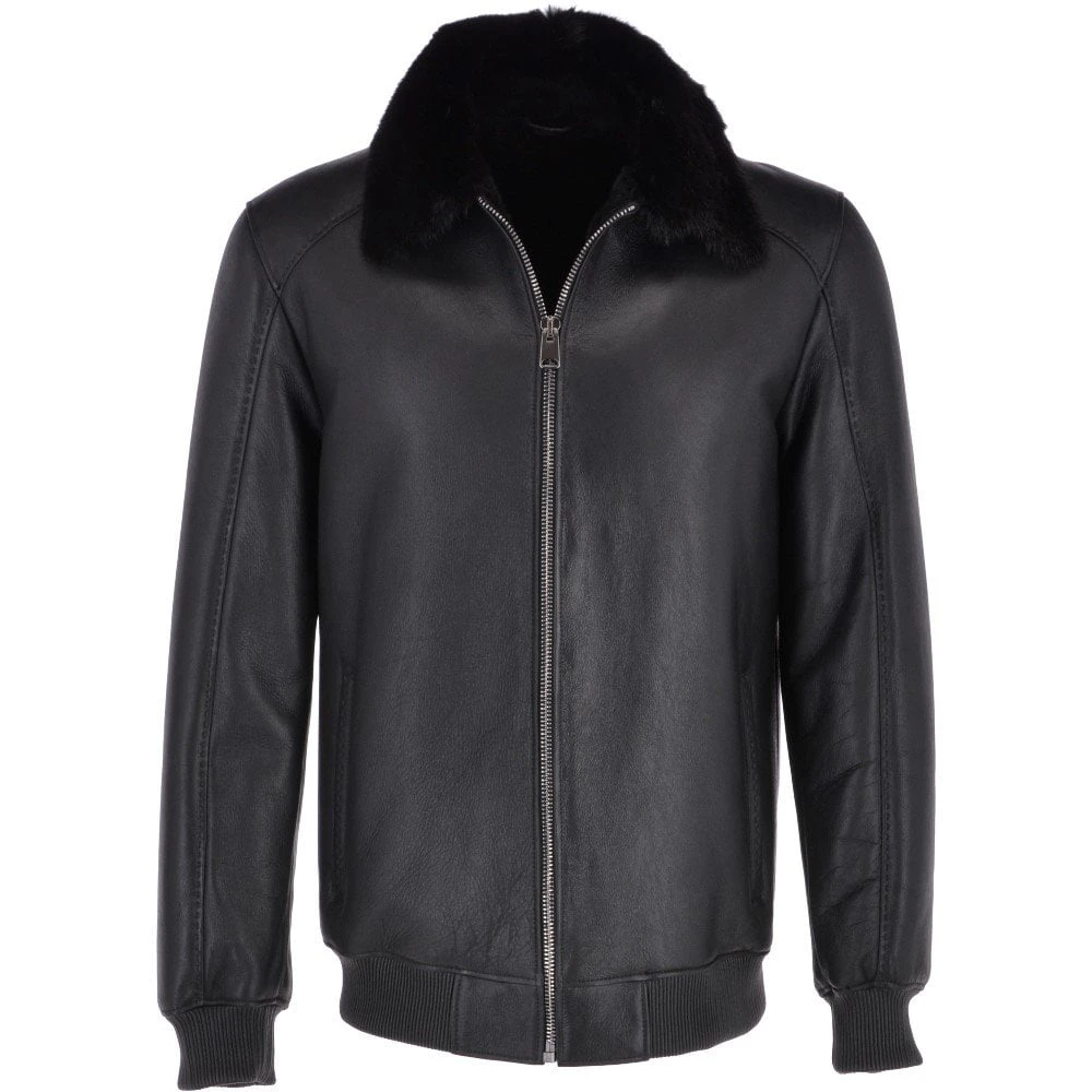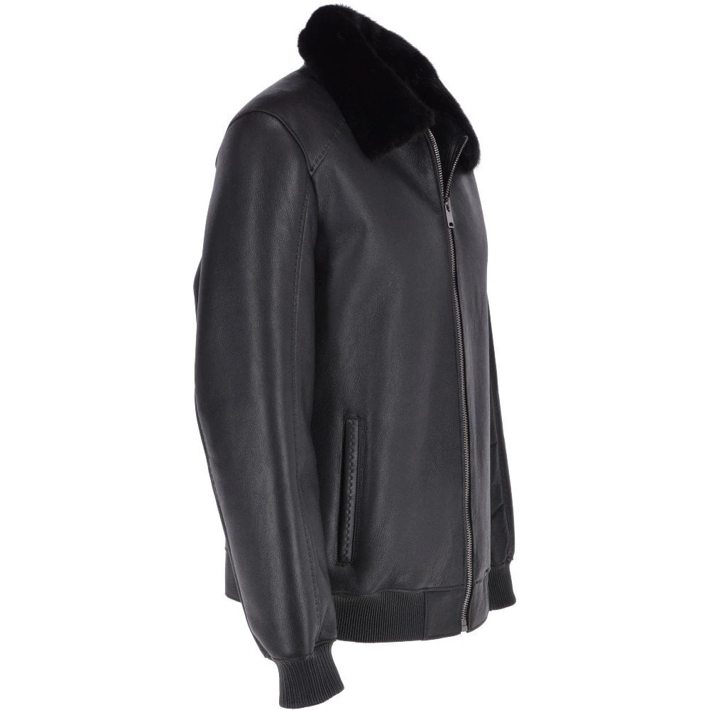 Luxury Sheepskin Pilot Bomber Jacket With A Mink Collar Black : Eilhart