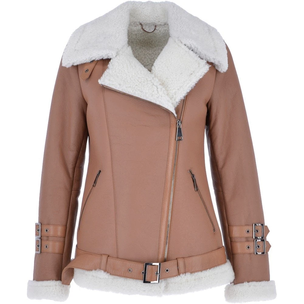 Womens Luxury Side Zip Sheepskin Pilot Jacket Light Tan : Caitlin
