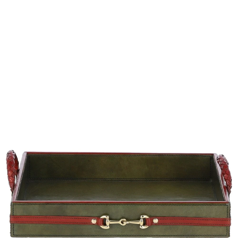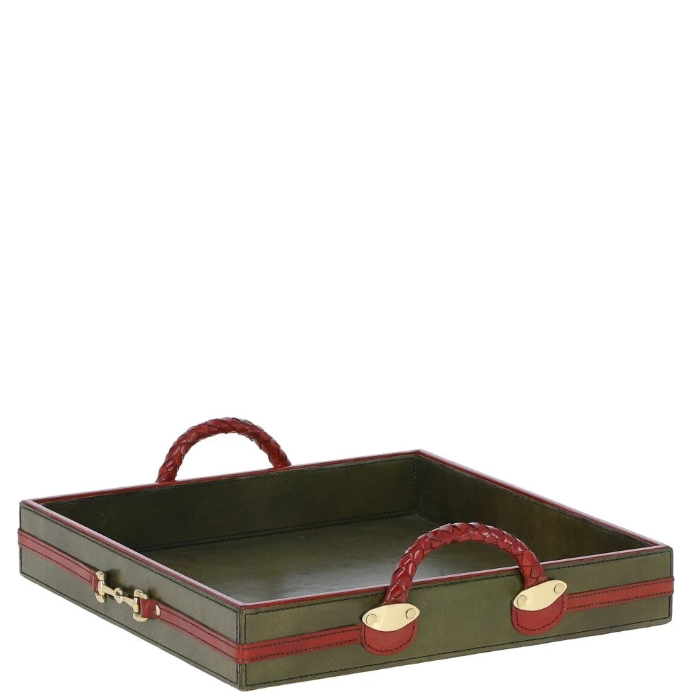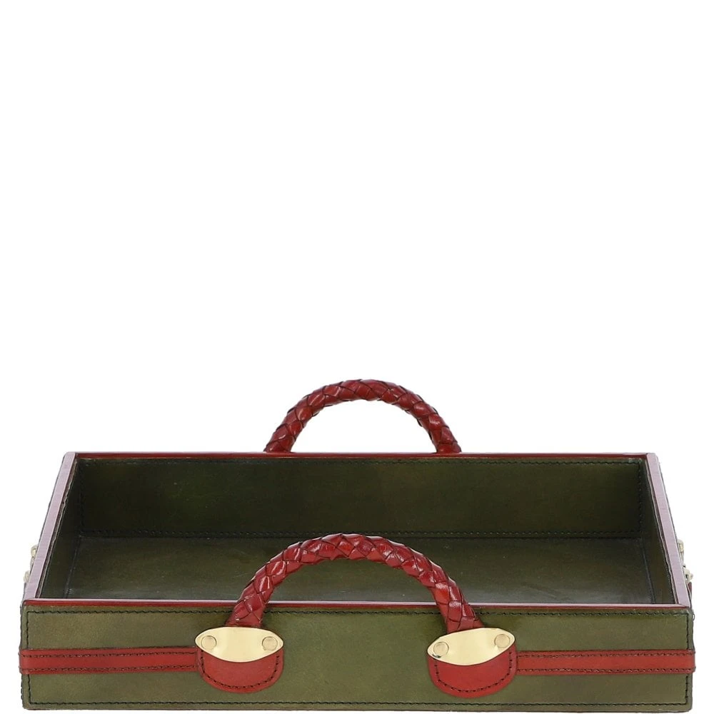 Luxury Square Leather Tray Green: TBZ1UC624