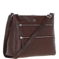 Designed with clean lines with a boxy silhouette, this croc print leather shoulder bag combines versatility with on trend luxury styling. Three handy zip pockets for all your essentials can be found on the external body. Open to find an internal zip pocket and two leather trimmed pockets.