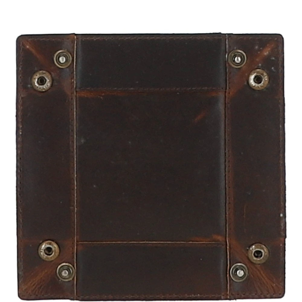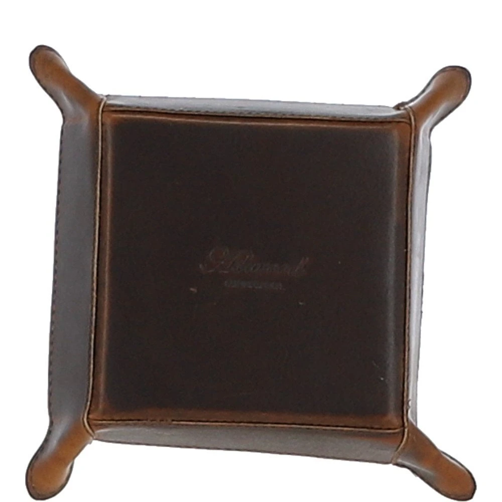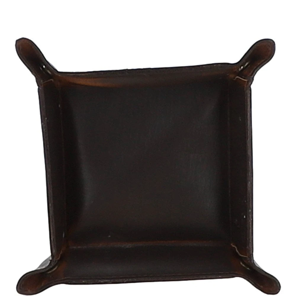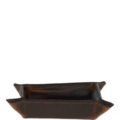 Crafted from a robust leather this all leather tidy tray is an ideal gift idea. Coloured in a beautiful copper brown. Can be folded flat for storage. 12cm x 12cm