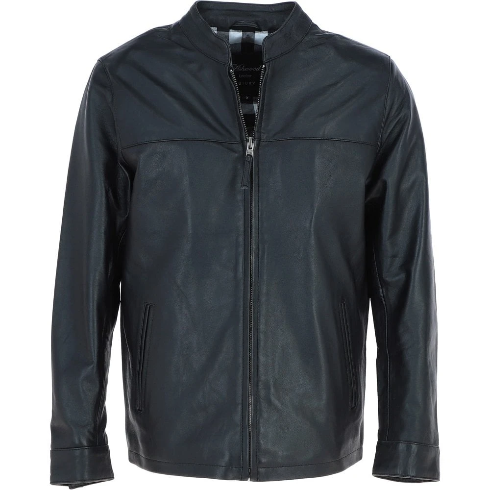 Ashwood Men’s Casual Real Leather Jacket with Mandarin Collar and Hidden Zip Black: AWM-COOPER