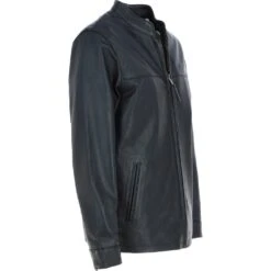 A refined take on a classic style, this men’s leather jacket is crafted from genuine leather for an effortlessly timeless look. Featuring a sleek 4cm mandarin collar and a straight hidden centre zip, it blends simplicity with sophistication. Two angled slip pockets at the waist provide functionality, while press stud cuffs add a subtle finish. Fully lined inside with both a slip and zip pocket, this jacket delivers comfort and practicality in equal measure. A versatile wardrobe essential designed for everyday wear and long-lasting appeal.