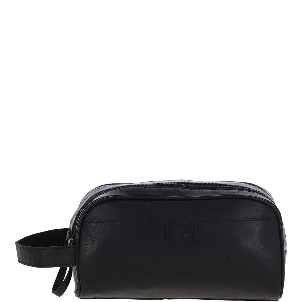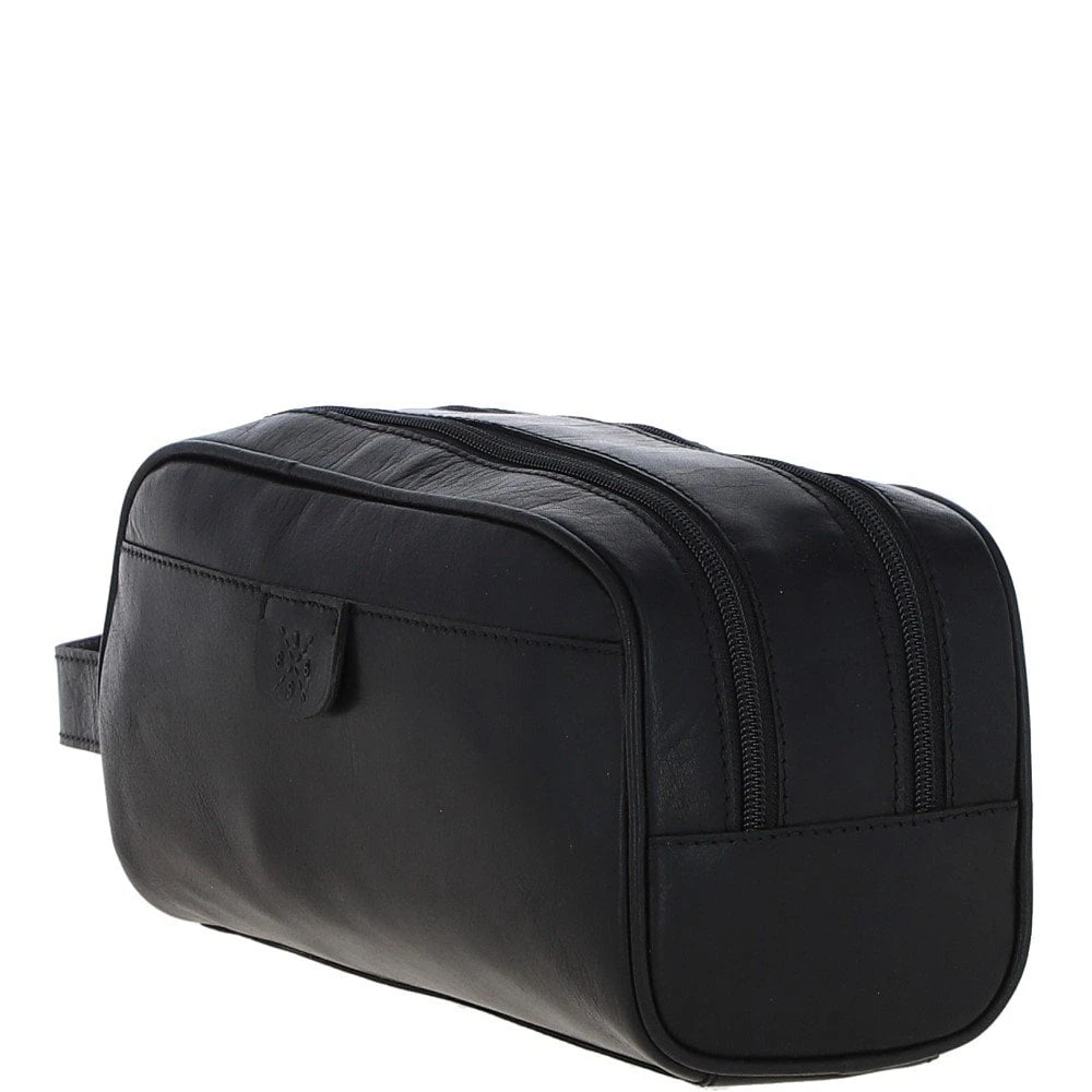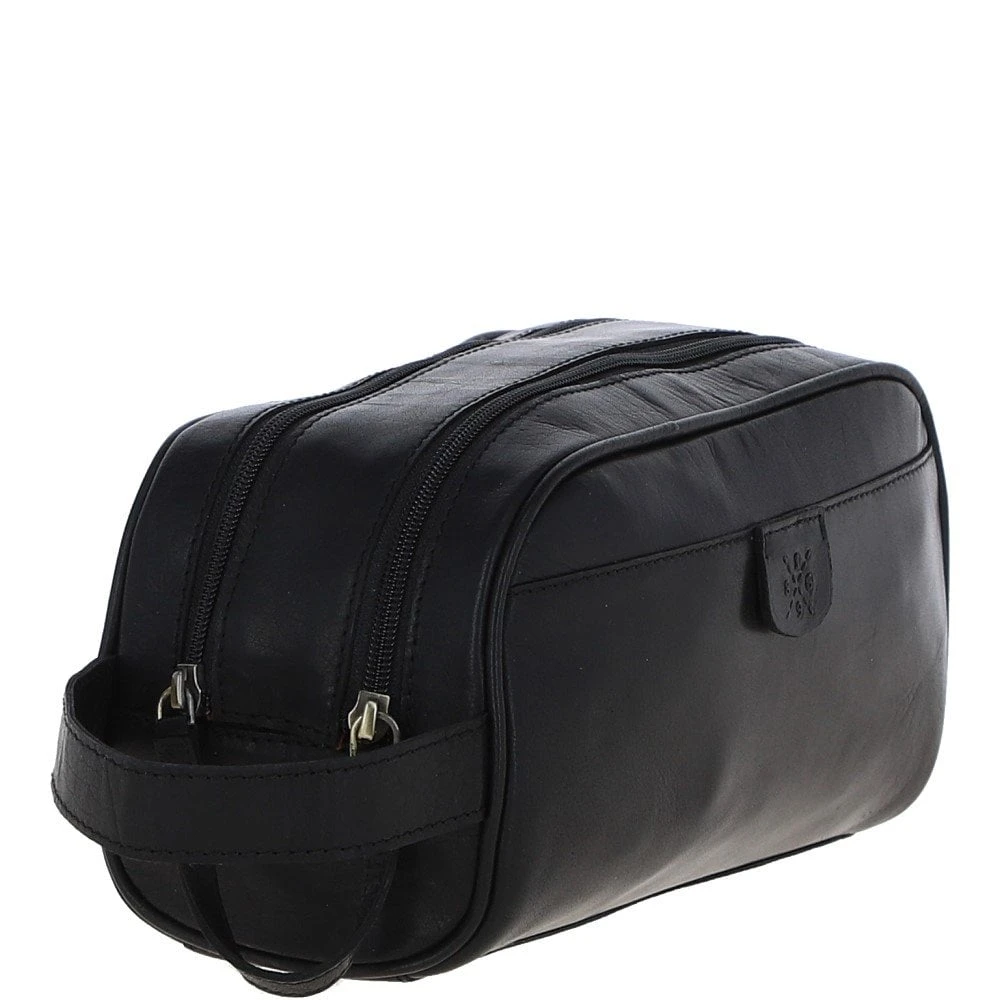 Ashwood Men’s Dual Zip Leather Washbag – Black: T-78