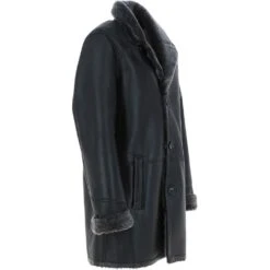 Men’s Luxury Single Breasted Sheepskin Coat Black/brissa: Barring