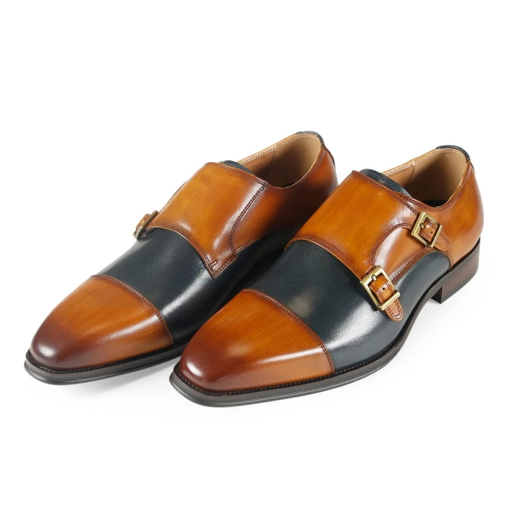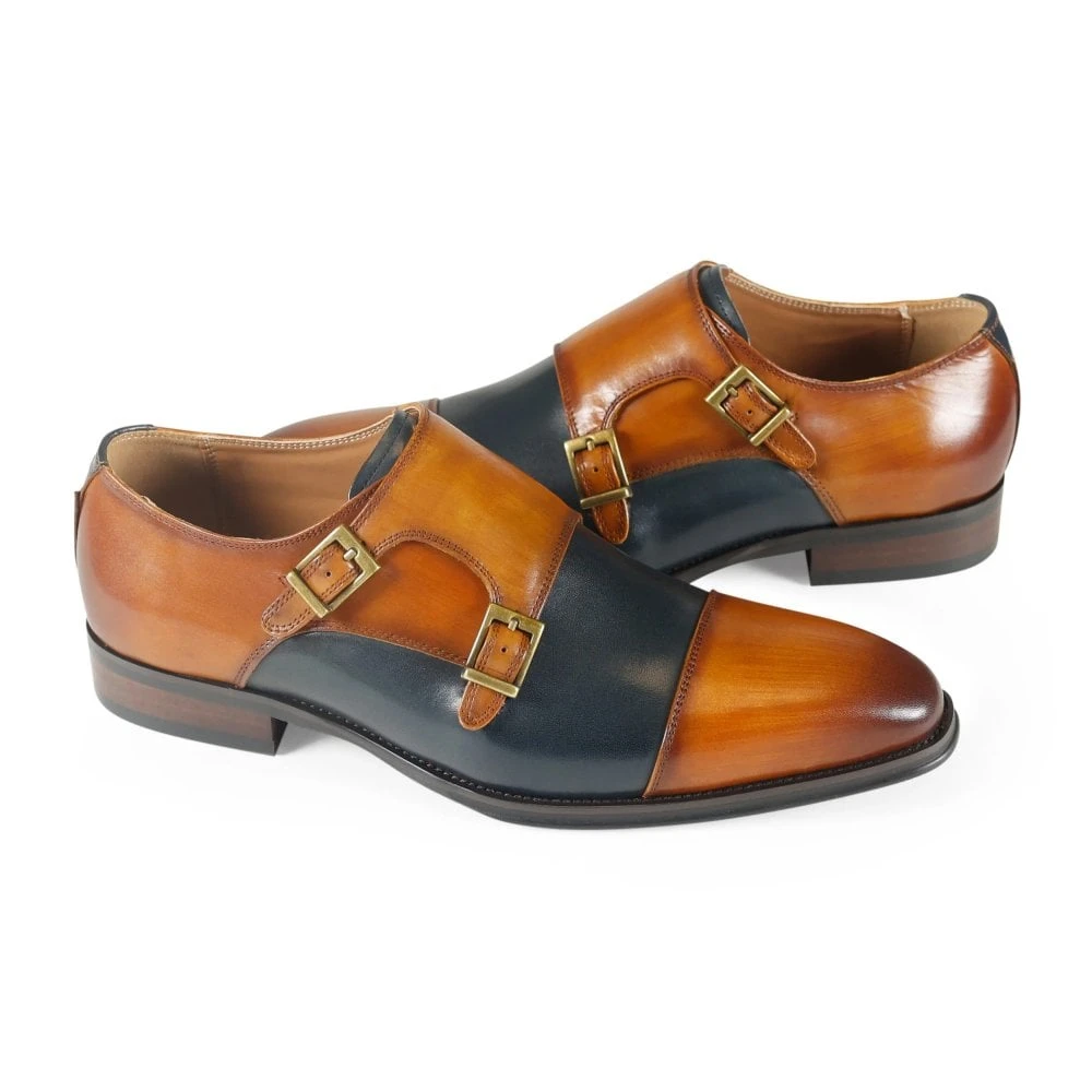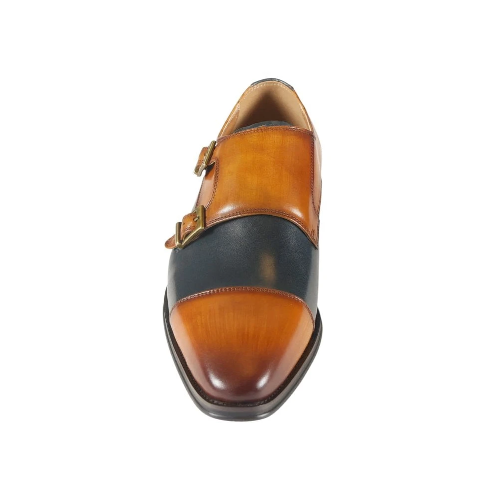 Azor Men’s Monk Strap Shoes Tan/Navy: LC LOMBARDY