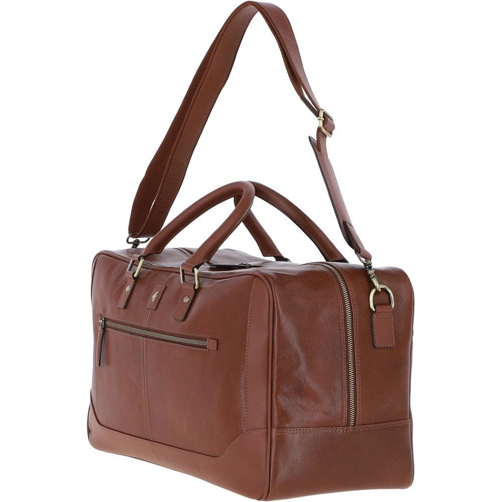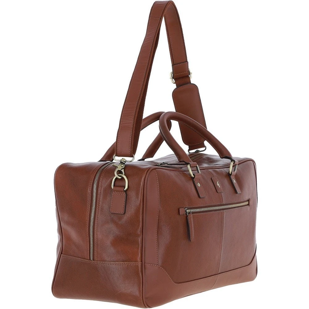 Mens Leather Holdall Weekend Bag Chestnut: Calvin