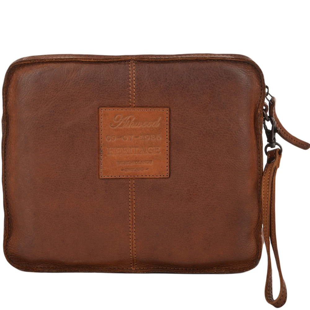 Handcrafted from beautiful vintage dipped leather to give vintage charm and character. This tablet sleeve, clutch bag is perfect for keeping small items safe. Inside you will find four credit card holder slots and a small slip pocket. With a matching detachable wrist strap and zip pocket to the external body. Complete with Ashwoods embossed heritage logo.
