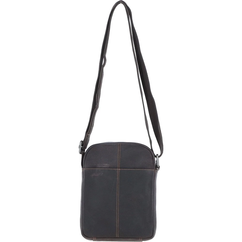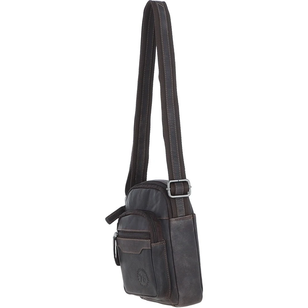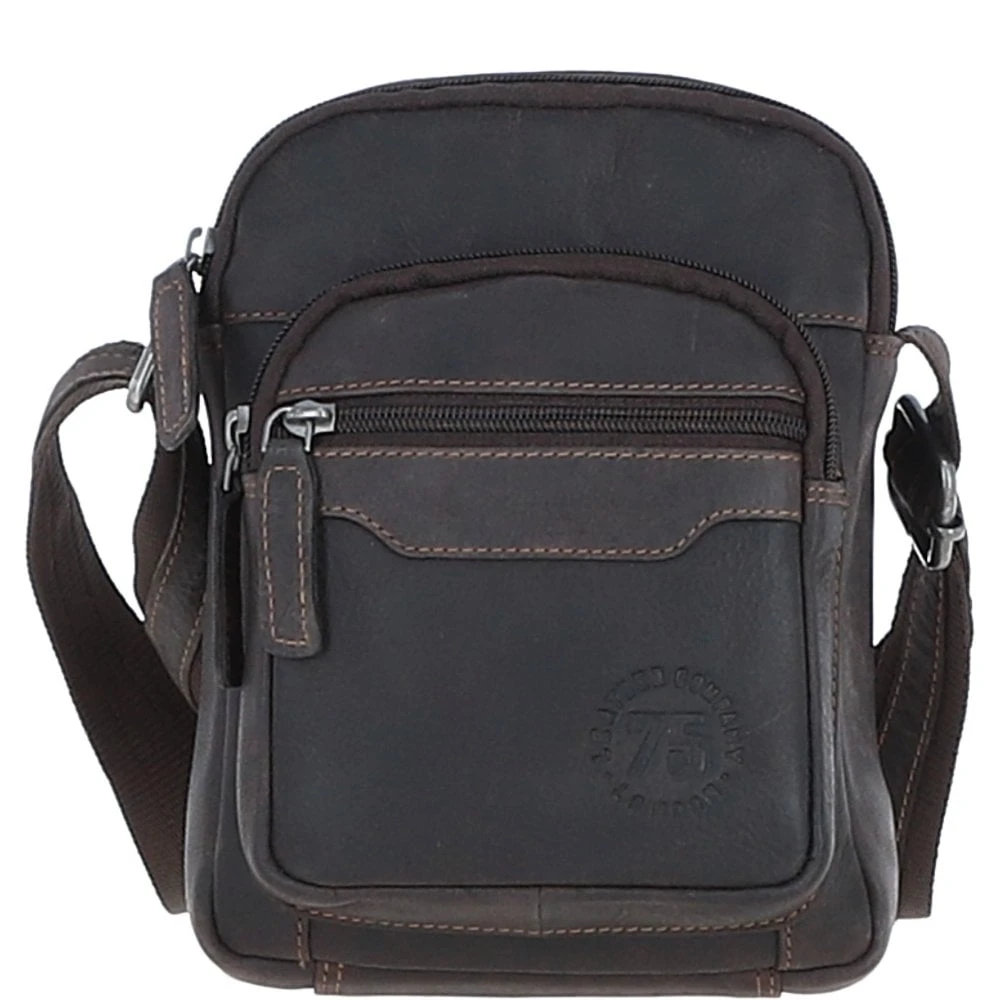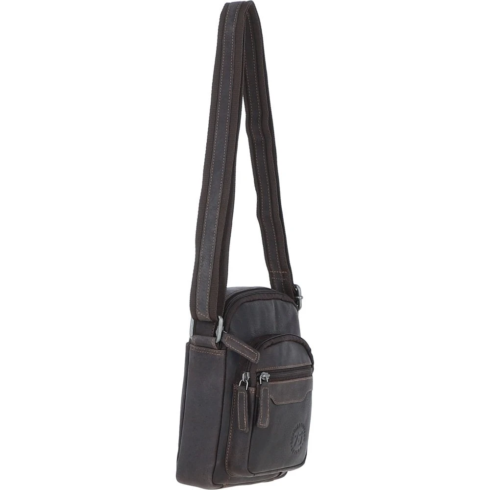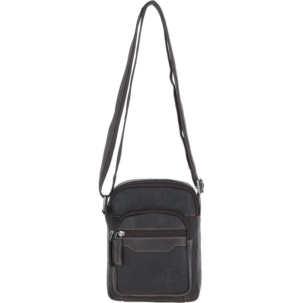 Crafted from premium real leather, this compact yet stylish crossbody bag is ideal for daily use or travel. It offers a practical layout with a top zip main compartment that includes one internal zip pocket and one slip pocket, perfect for organizing essentials. The bag also features two front zippered pockets, a convenient rear slip pocket, and is lined with a leather company branded lining. Finished with durable silver brass hardware and an adjustable strap, it blends rugged style with everyday functionality.