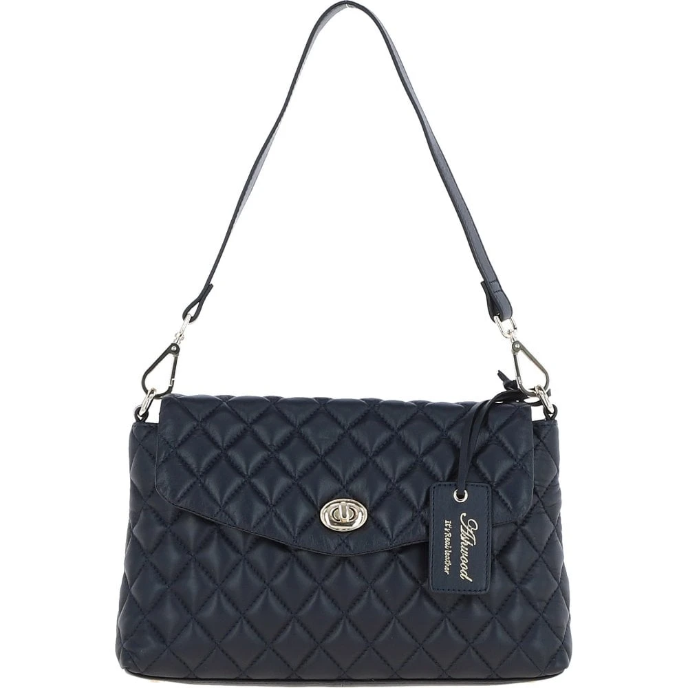 Real Leather Flapover Quilted Bag Cotswold Navy: 63858
