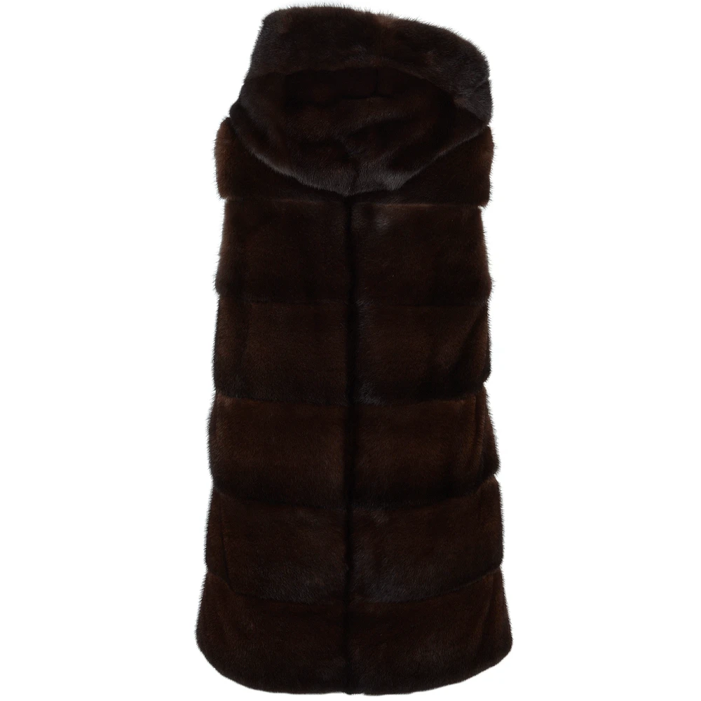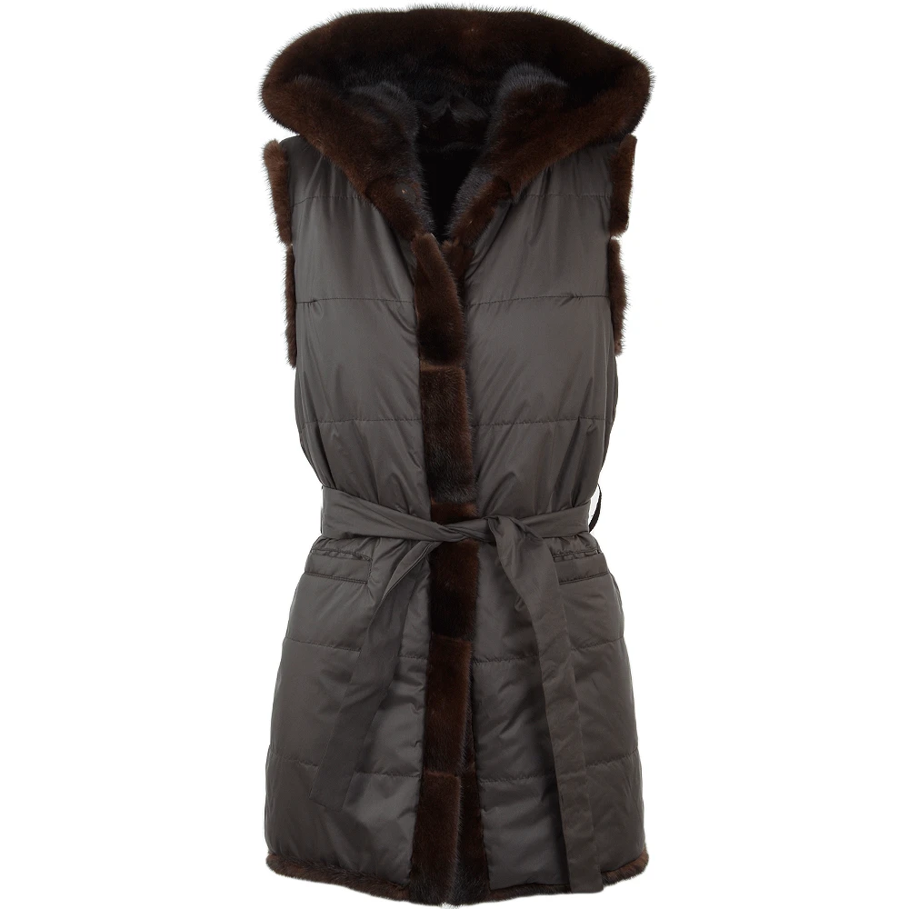Ladies Reversible Mink Hooded Gilet : Topaz