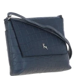 Rosea Flap Over Croc Print Real Leather Shoulder Bag Navy/croc: MC6