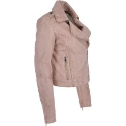 Womens Leather Short Biker Jacket Stone : Brooklyn