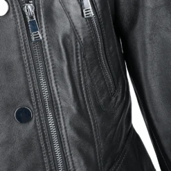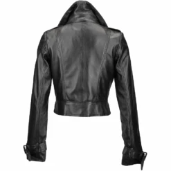 Ladies Short Vegetable Tanned Leather Biker Jacket Black : Sabine