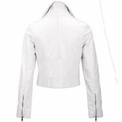 A chic short white biker jacket crafted in a beautiful vegetable tanned eco friendly leather. With its simple clean lines, biker detailing, timeless styling, complete with a hand rubbed finish. Expect a side zip fastening, two functional zip pockets and biker zip cuffs.