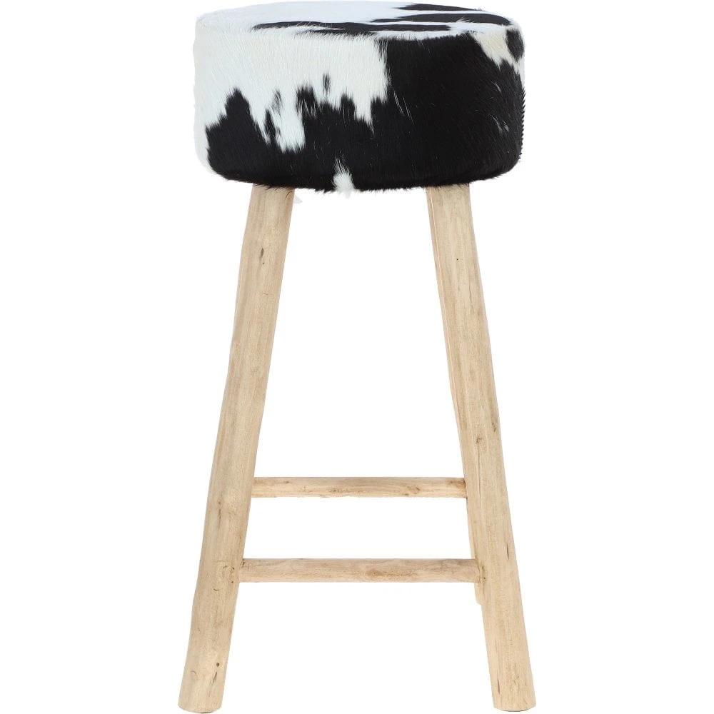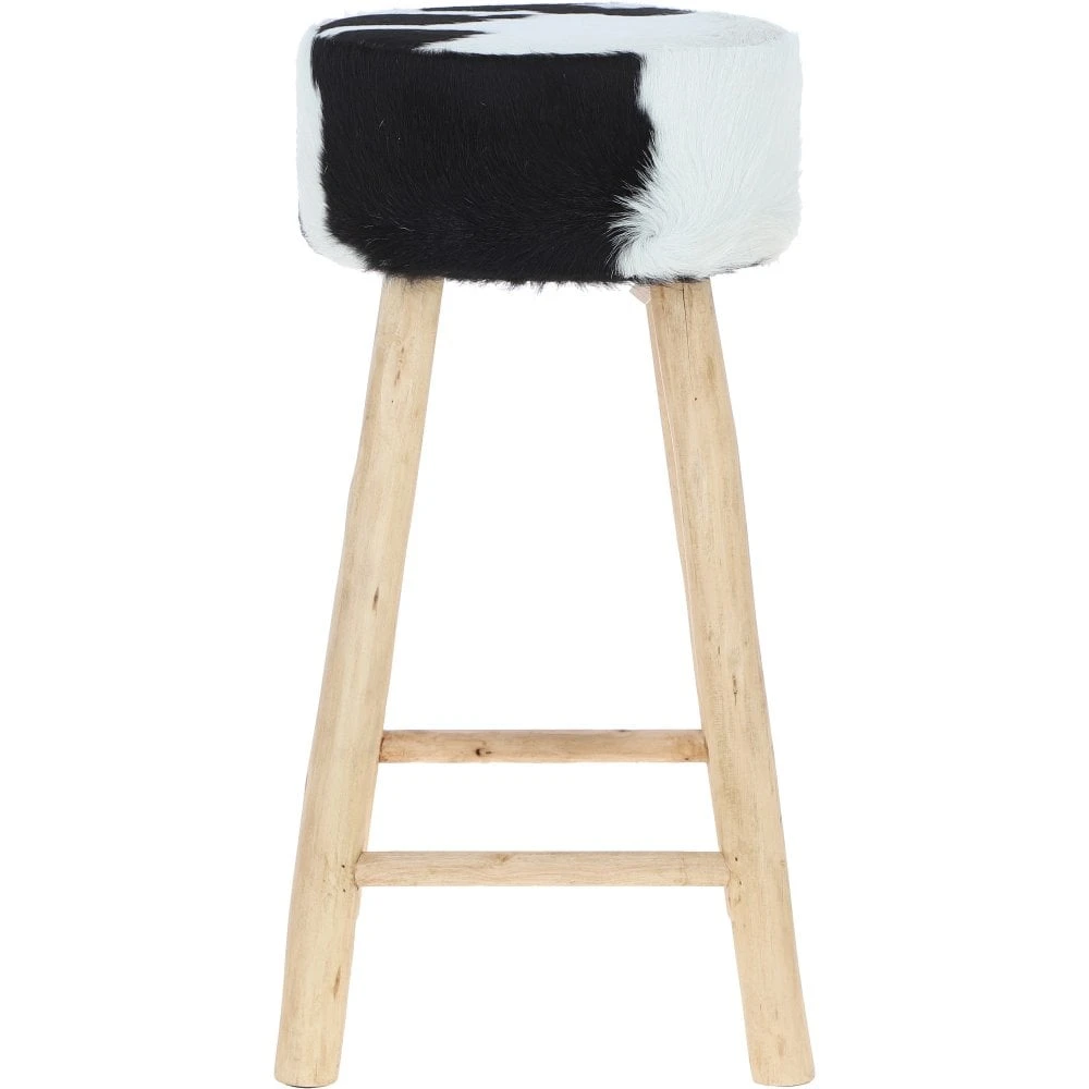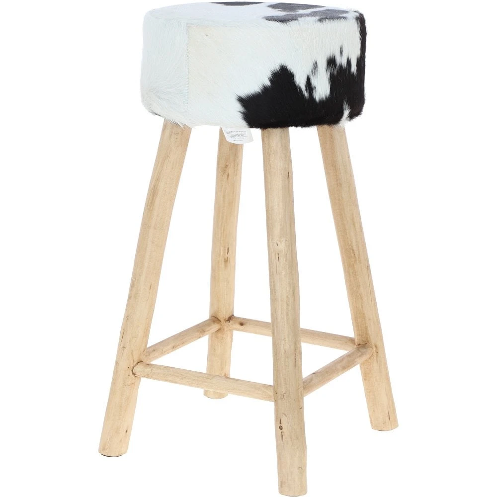 Stylish Ashwood Stool with Black and White Upholstered Seat: M-7646