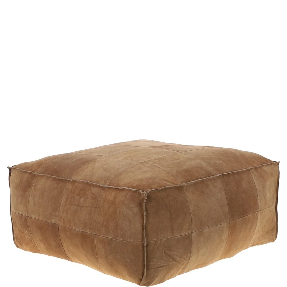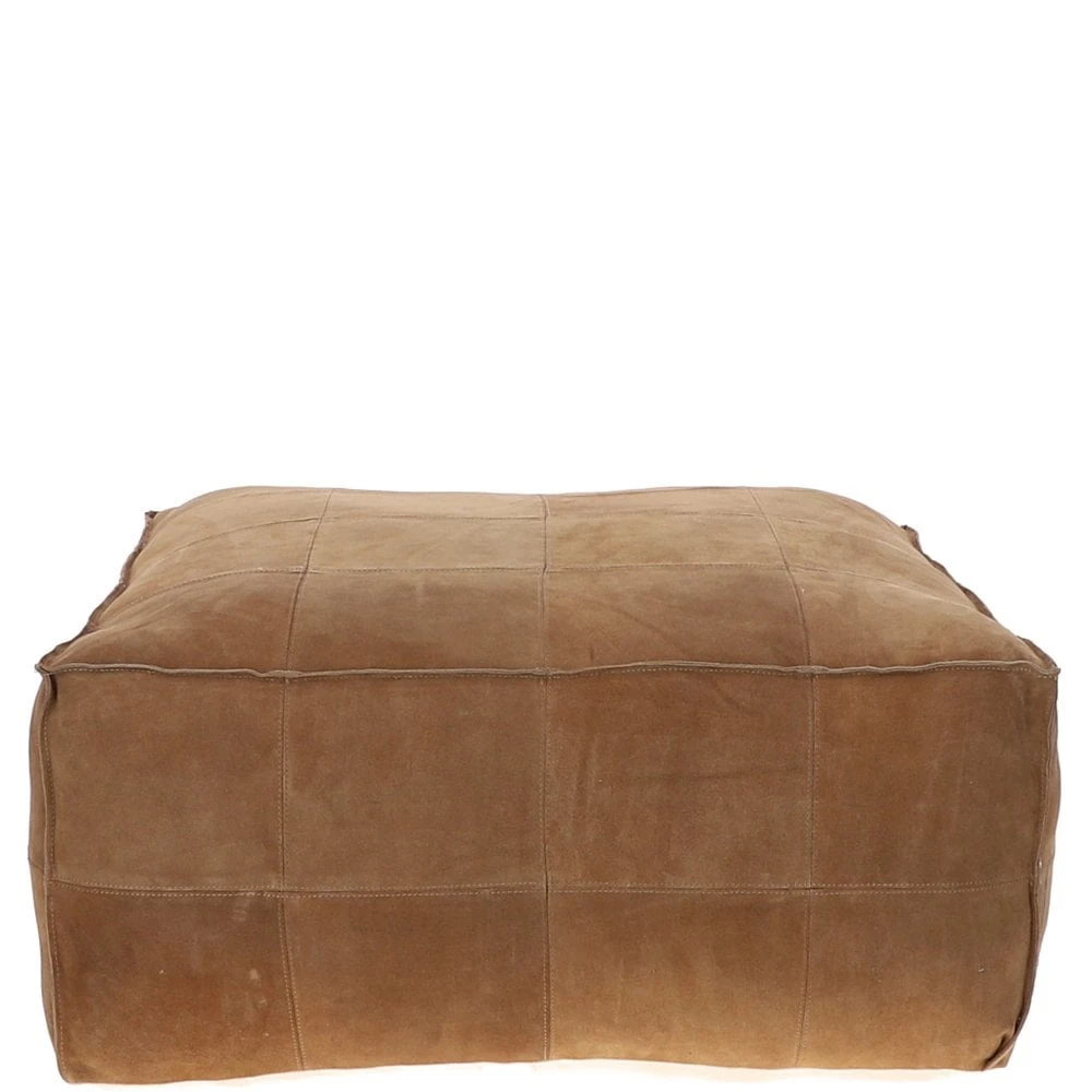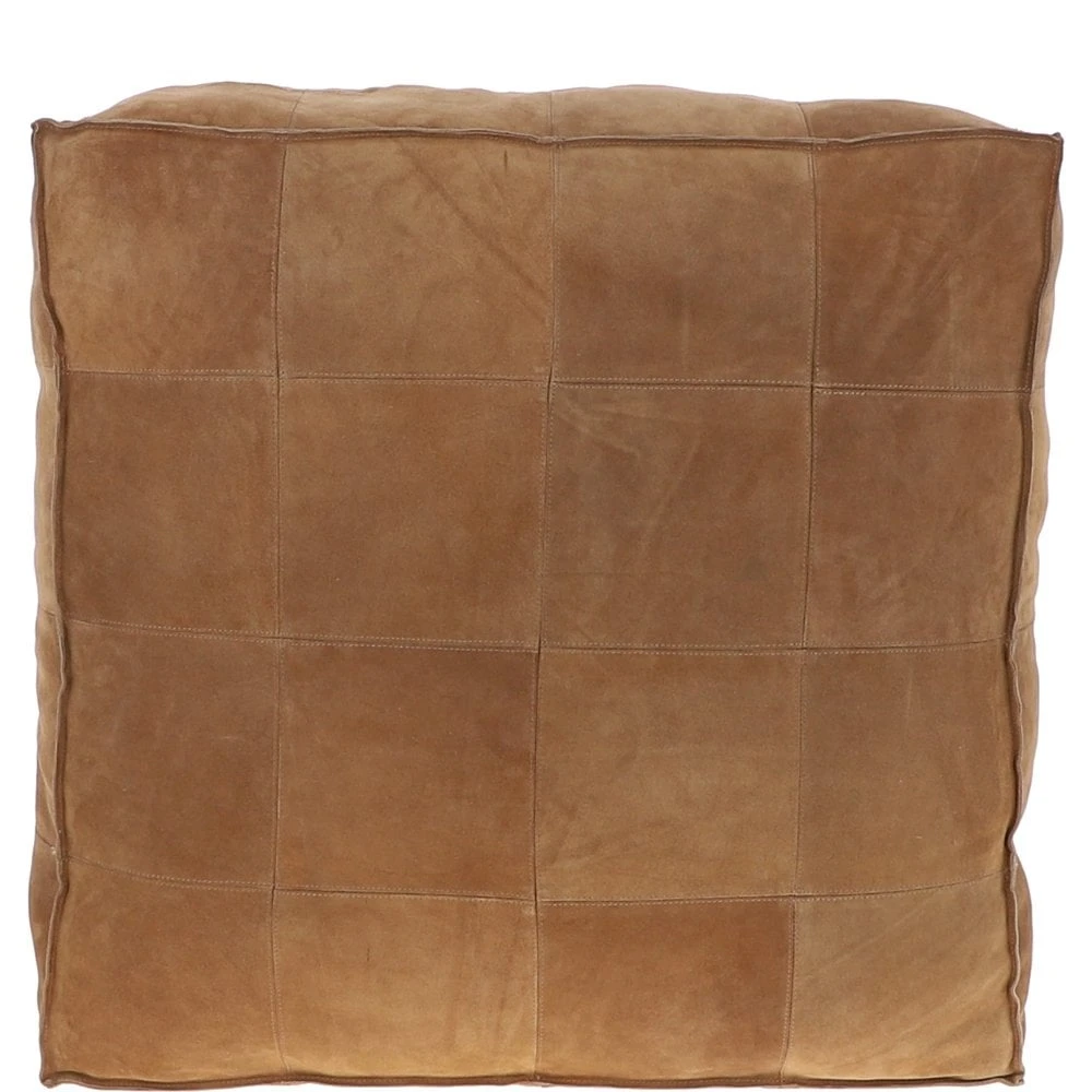 Suede Leather Square Boho Pouffe Camel: AGC-06