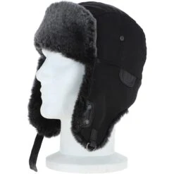 Trapper Hat With Sheepskin Fur Black/brissa : Aspen