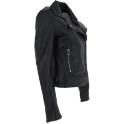 Women’s Twin Zip Fastening Leather Jacket Black : Ciara