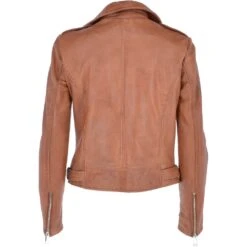 Women’s Twin Zip Fastening Leather Jacket Cognac: Ciara
