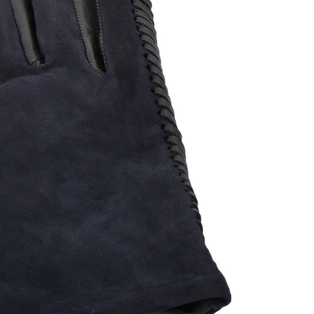 Women’s Two Tone Suede And Leather Gloves With Leather Woven Stitch Detail: 343