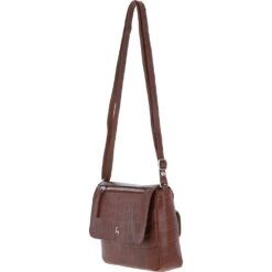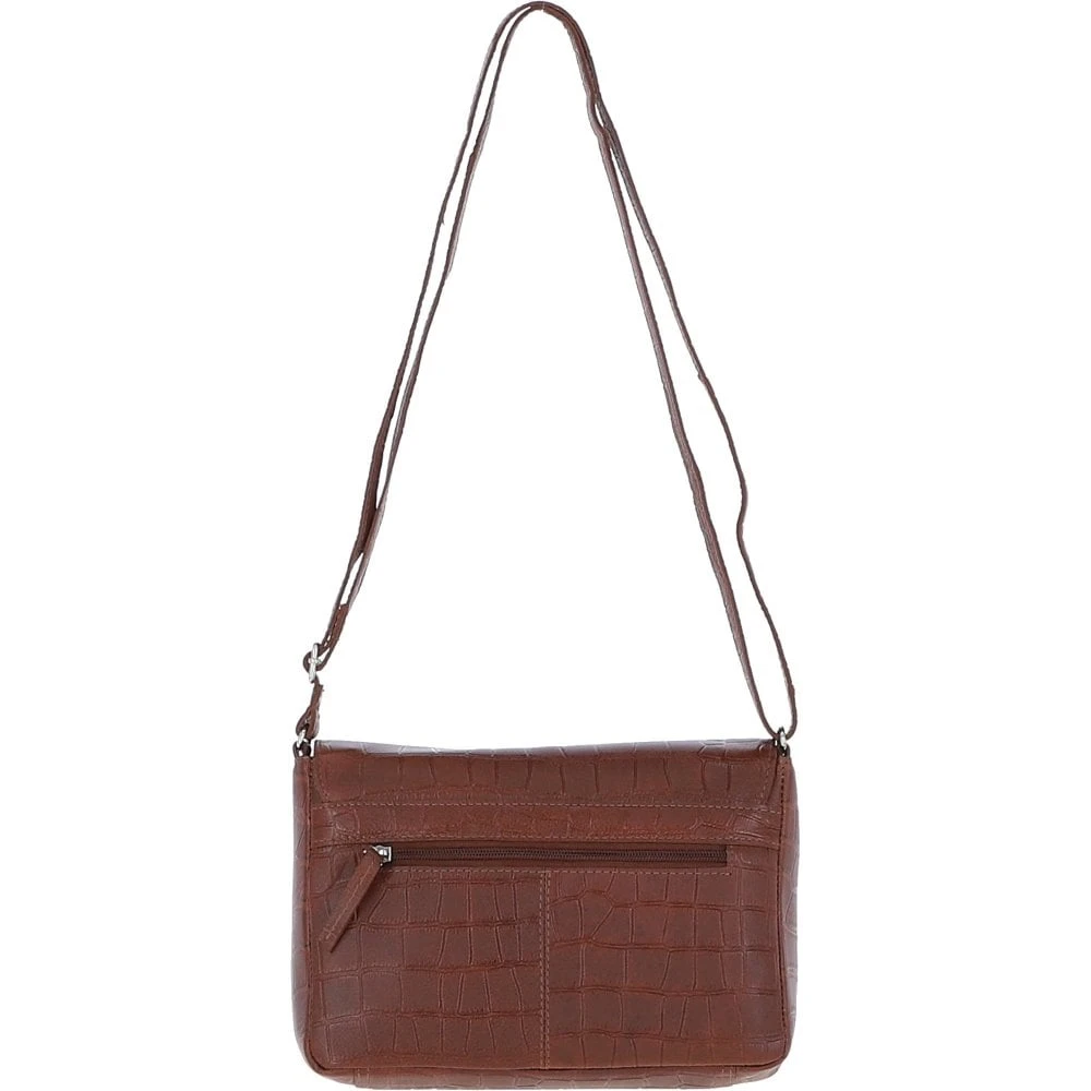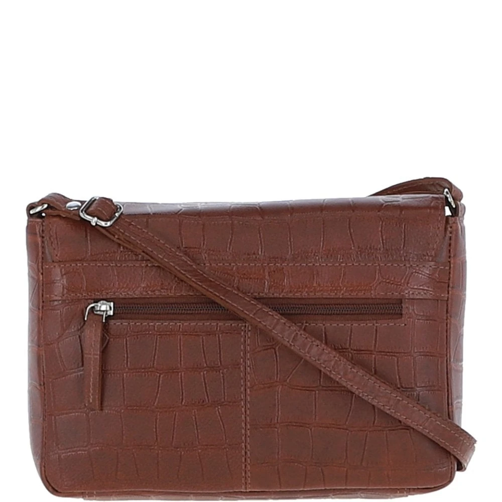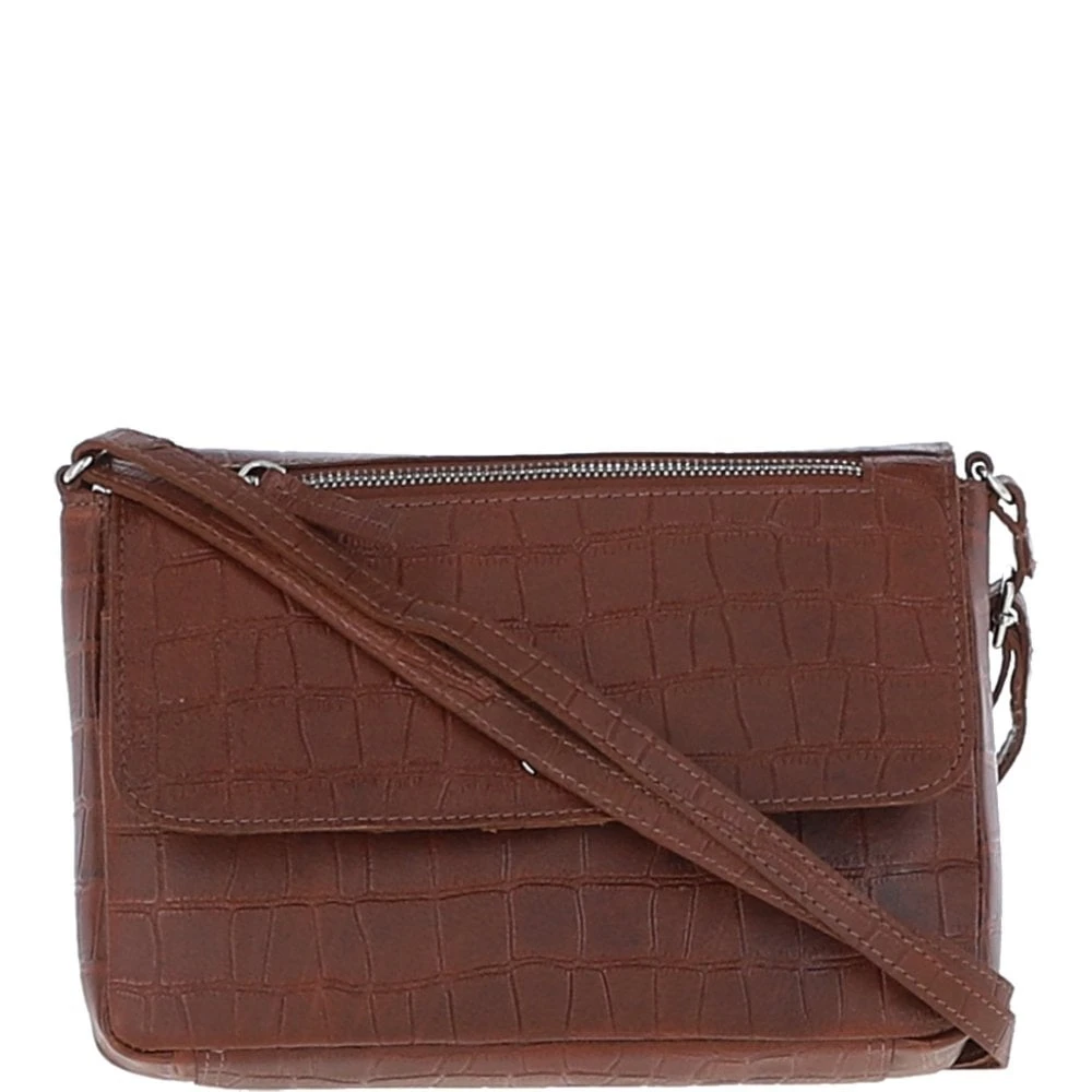 Valentina Flap Over Croc Print Real Leather Shoulder Bag Cognac/croc: MC5