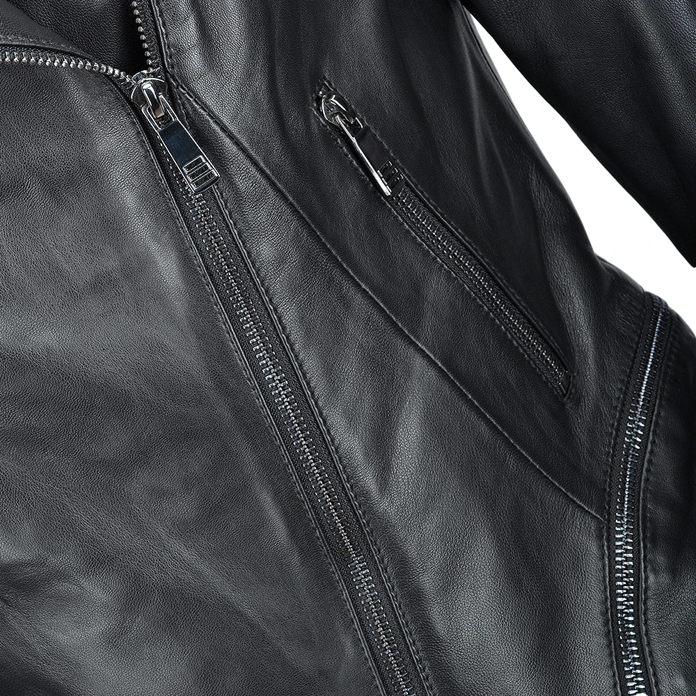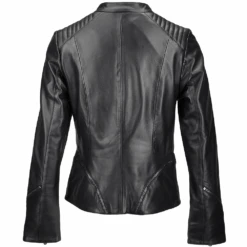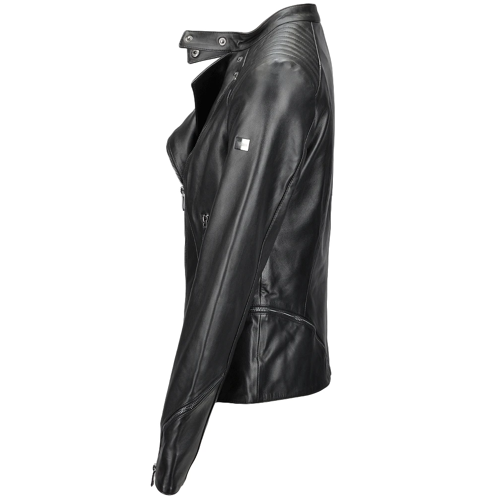 Handcrafted modern black biker in beautiful veg tanned eco friendly leather. With its simple clean lines, biker detailing, timeless styling, complete with a hand rubbed finish. The Kiara ladies leather jacket is a must have for any woman looking for a wearable modern biker style jacket which can be worn with any type of apparel.