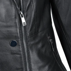 Ladies Vegetable Tanned Leather Biker Jacket Black : Rosabel