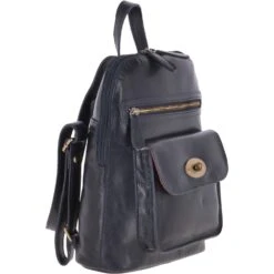 Expect a zip top closure. Two external pockets and a securtiy pocket. Open to find a zip pocket and slip pockets for all your essentials Handcrafted from beautiful veg tan leather this backpack has been masterfully crafted using traditional leather techniques and then coloured in navy.