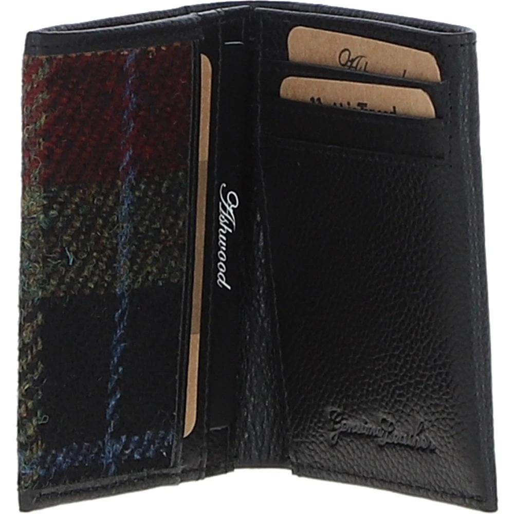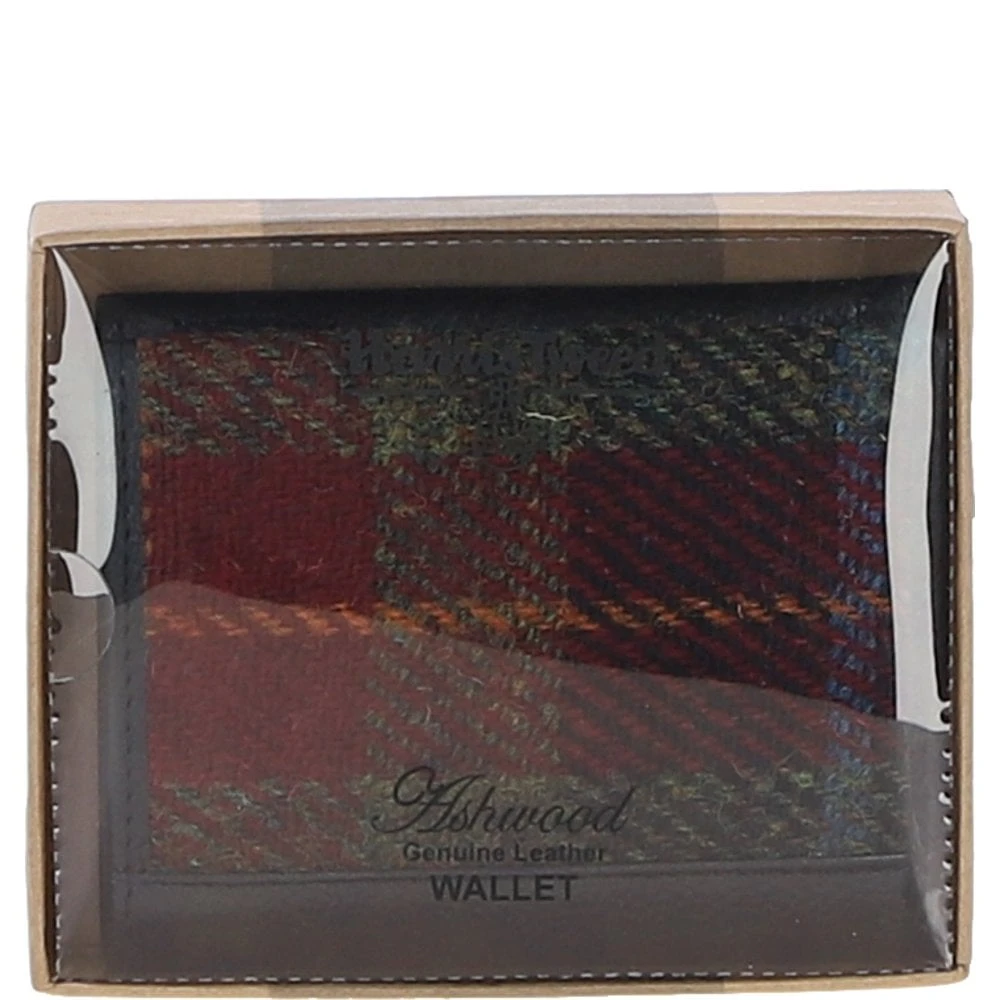 Versatile Ashwood Leather x Harris Tweed RFID Secure Wallet Black/Green/Red: TW-17-07-BR
