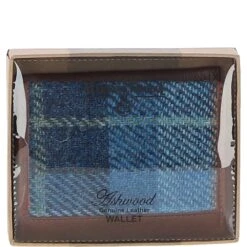 Versatile Ashwood Leather x Harris Tweed RFID Secure Wallet Tan/LT Blue: TW-17-05-TB