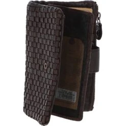 A luxurious vintage wash 18 card purse with a new refined shape. Expect a woven leather detailed front. Open to find a spacious inner compartment, an internal zip pocket and slip pockets for all your essentials.