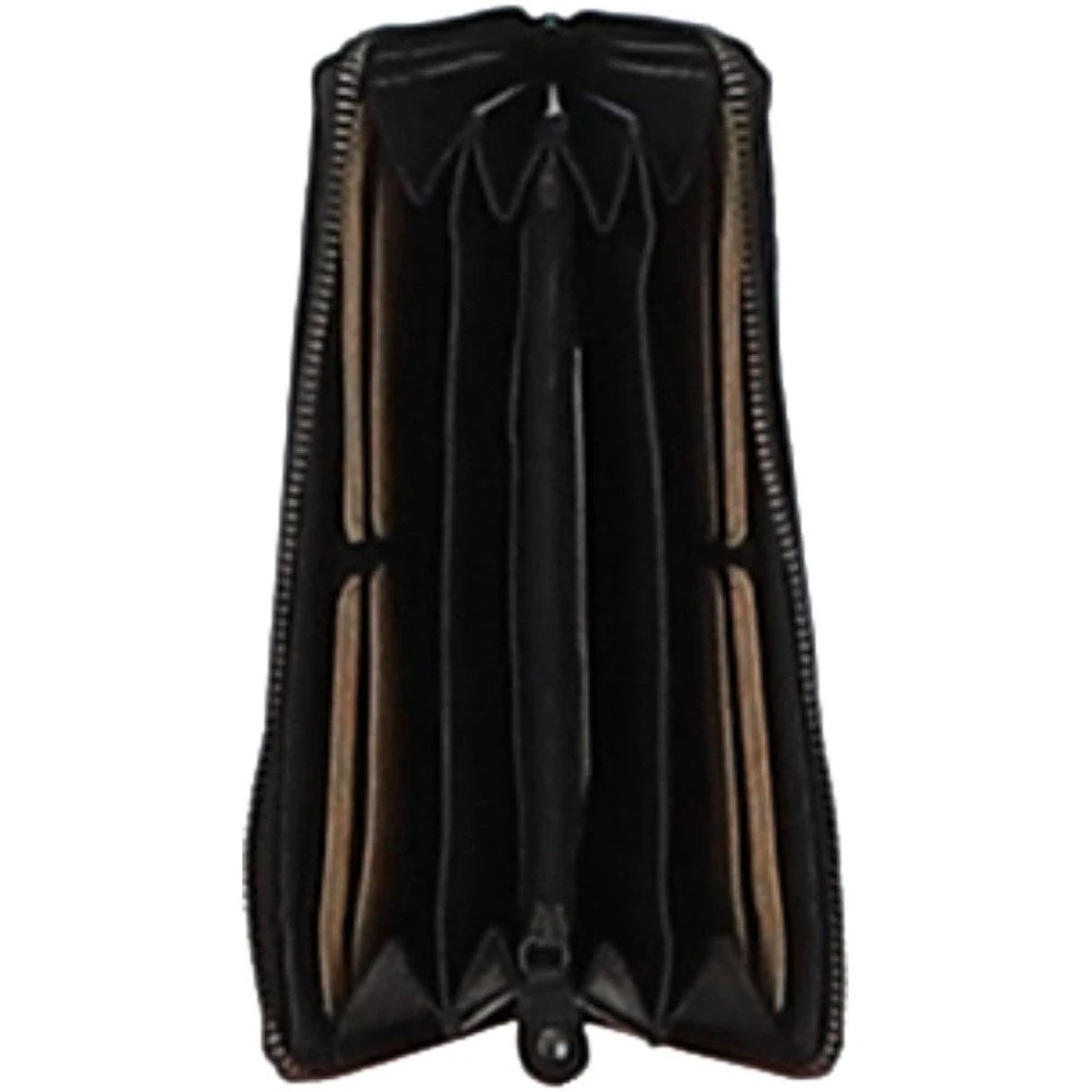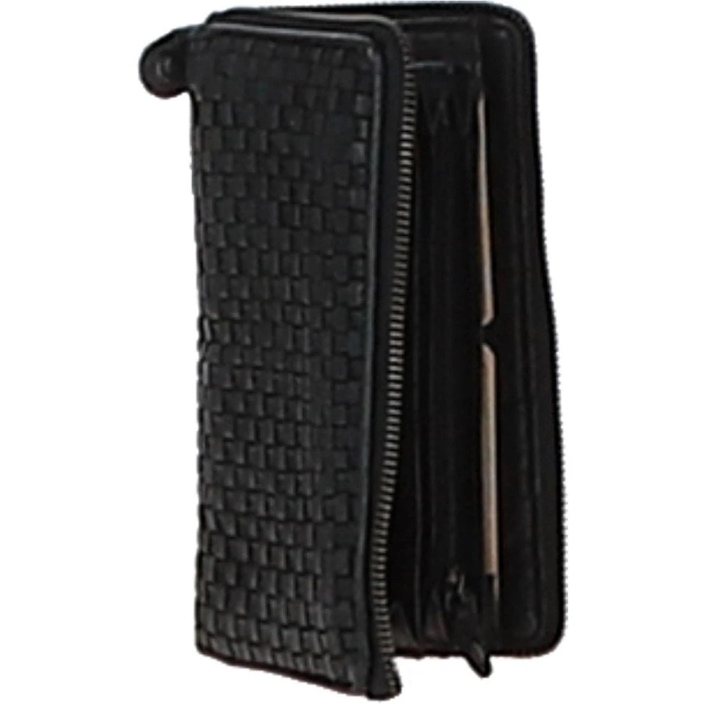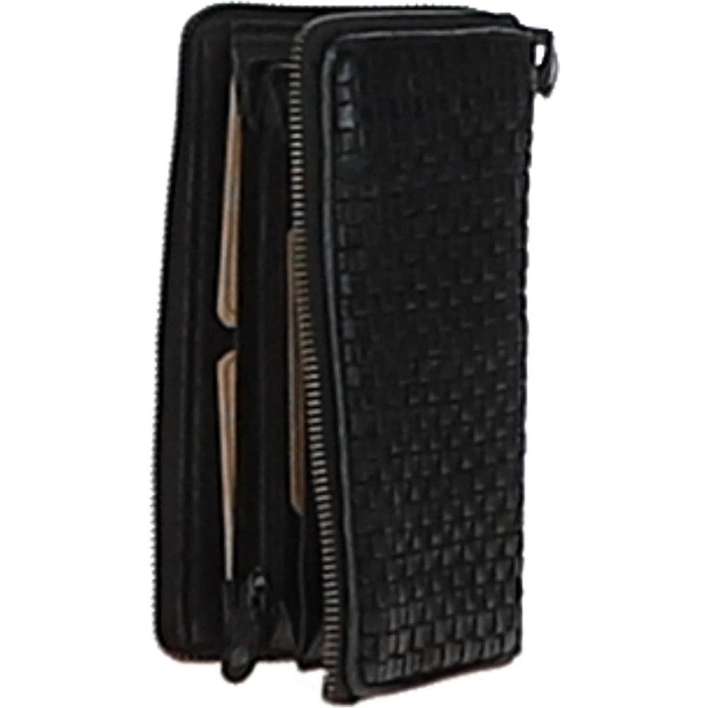 Vintage Woven Leather Zip Around Large 10 Card Coin Note Purse Black : D-81