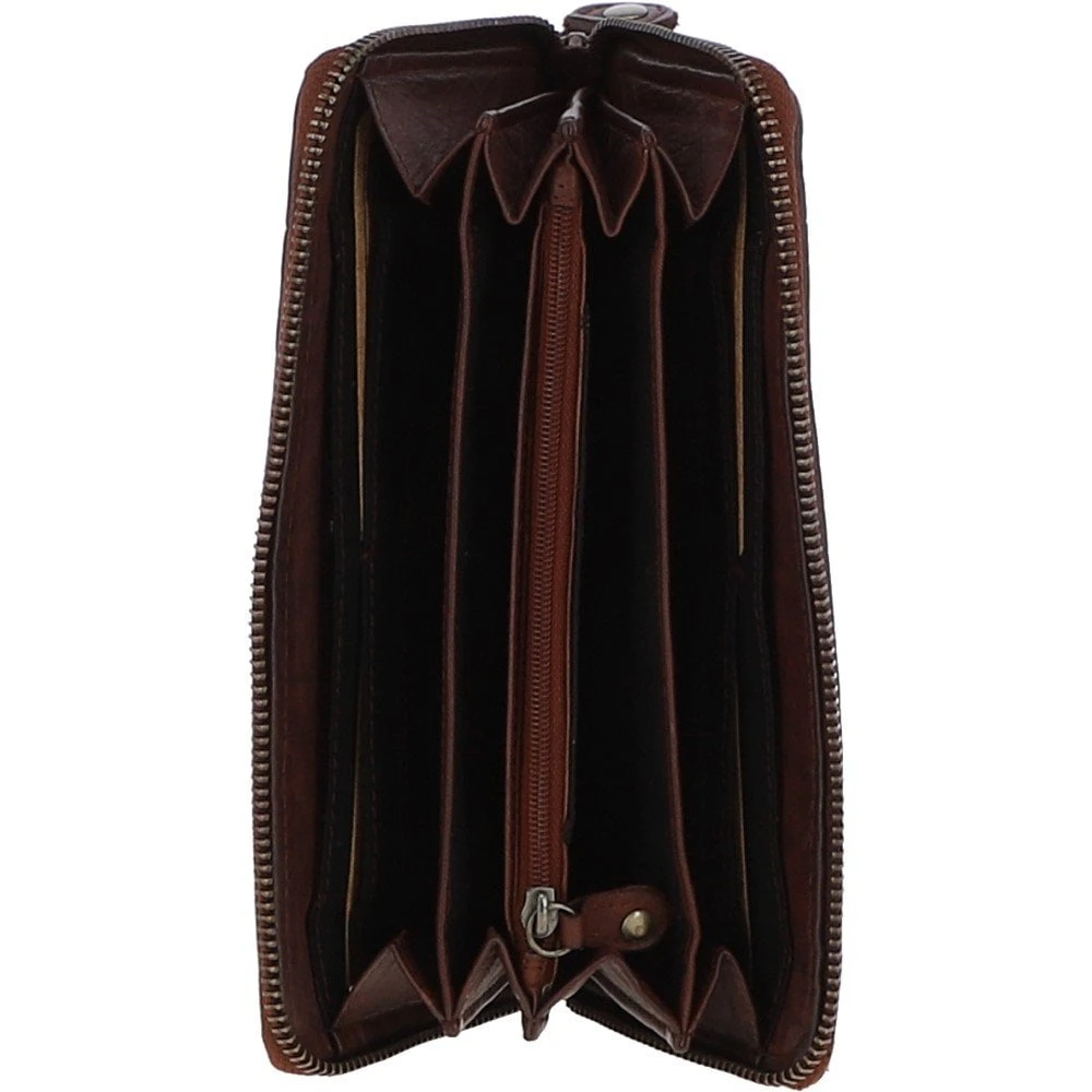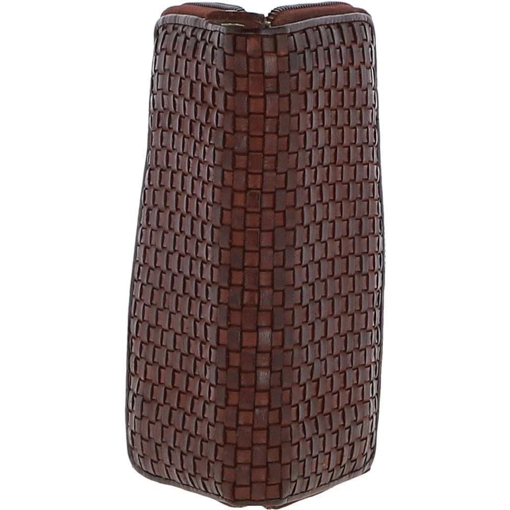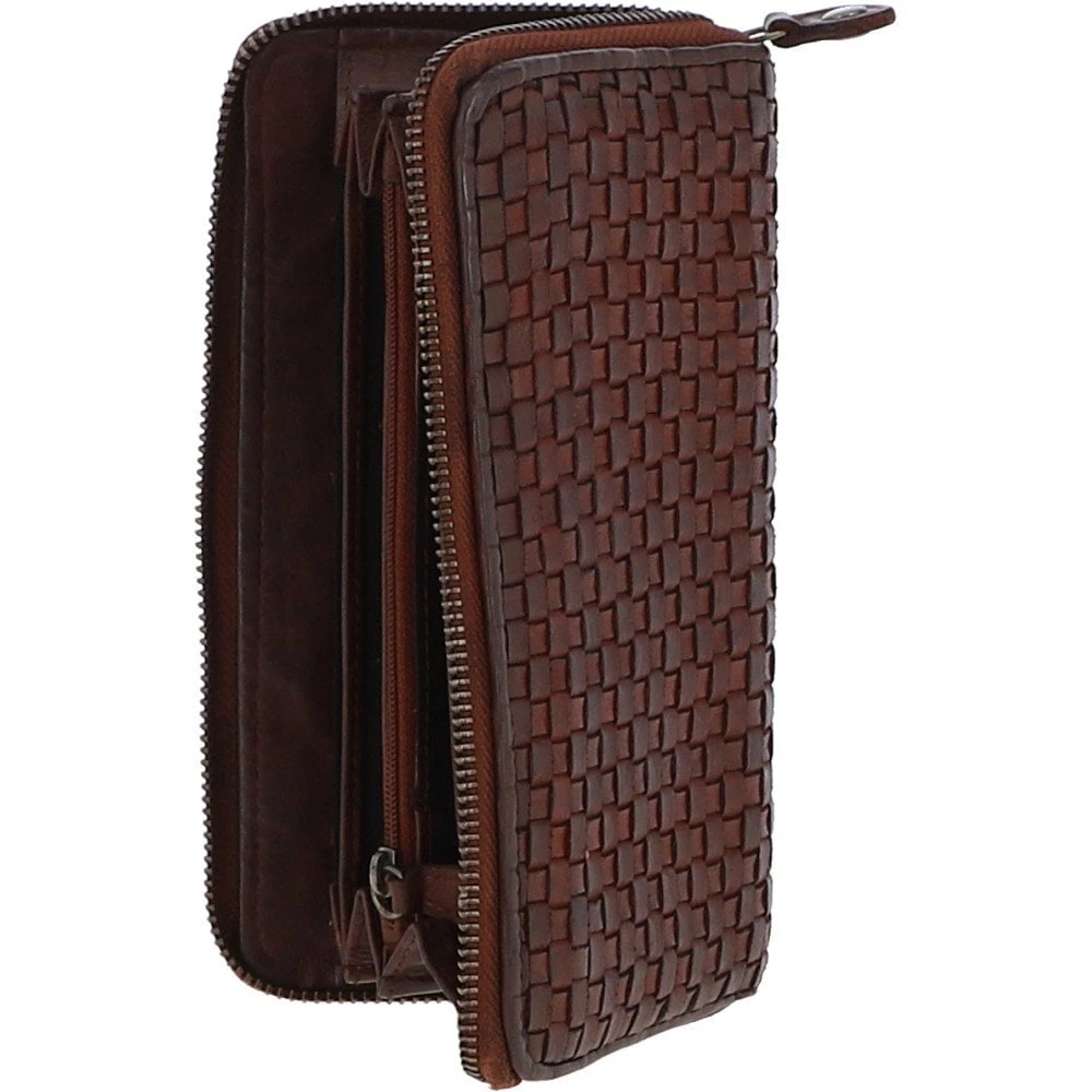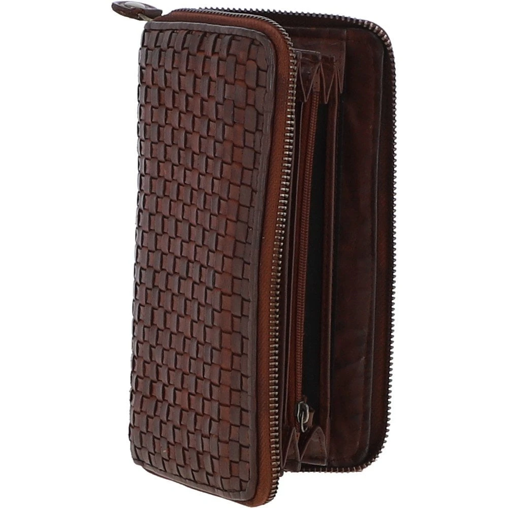 Vintage Woven Leather Zip Around Large 10 Card Coin Note Purse Cognac : D-81