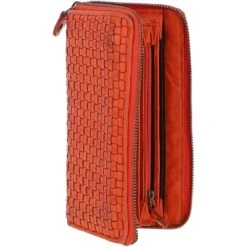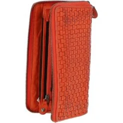 Vintage Woven Leather Zip Around Large 10 Card Coin Note Purse Orange : D-81