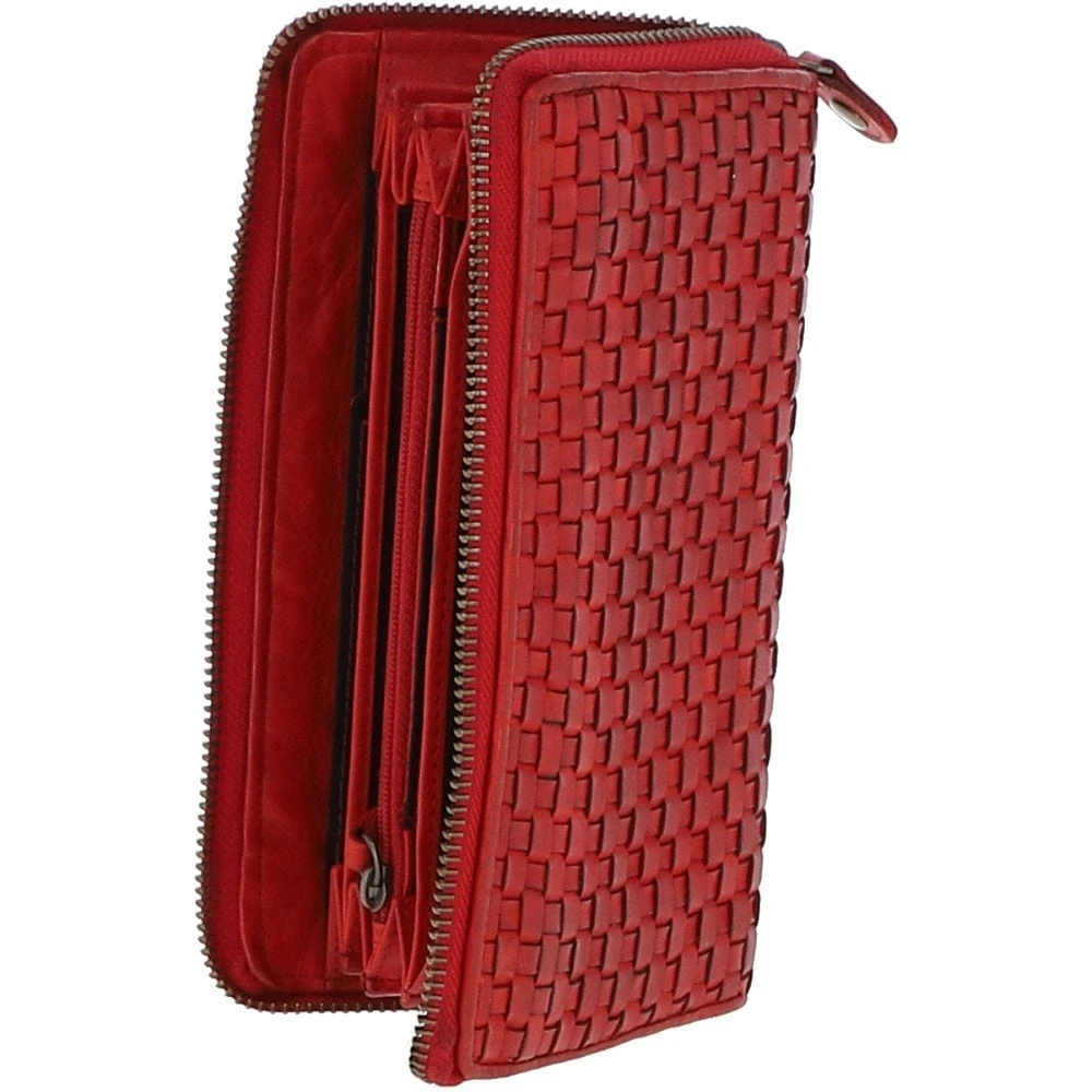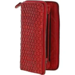 Vintage Woven Leather Zip Around Large 10 Card Coin Note Purse Red : D-81