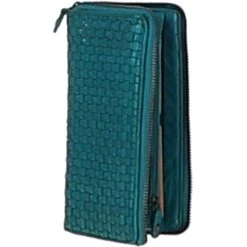 Vintage Woven Leather Zip Around Large 10 Card Coin Note Purse : D-81