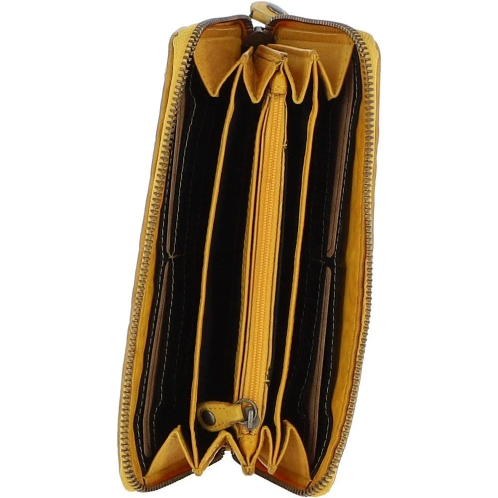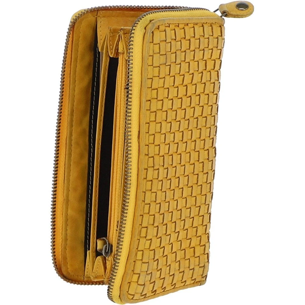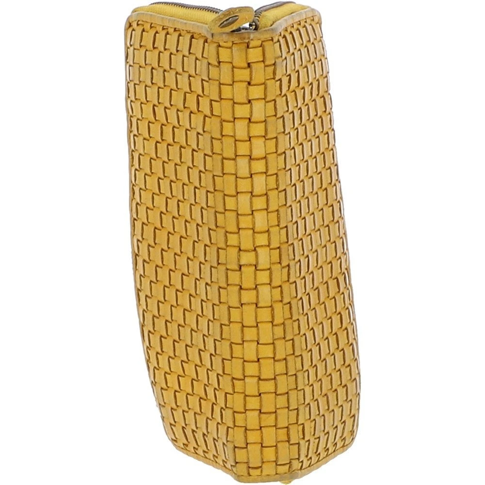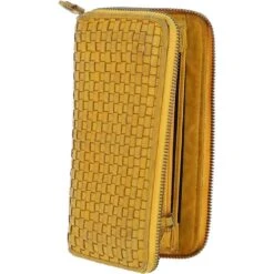 Vintage Woven Leather Zip Around Large 10 Card Coin Note Purse Yellow : D-81