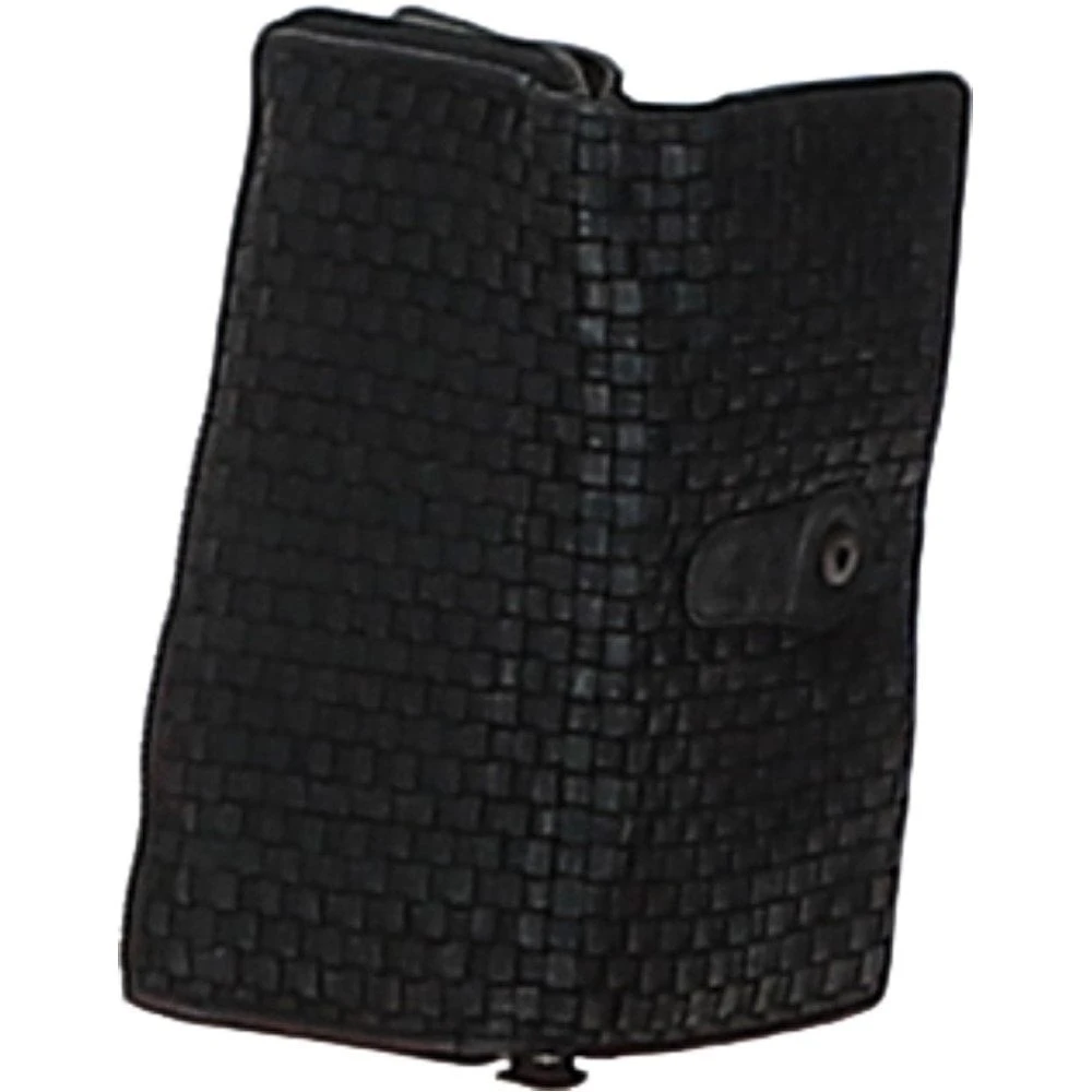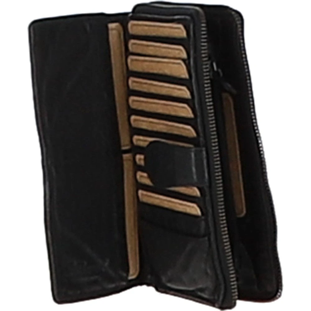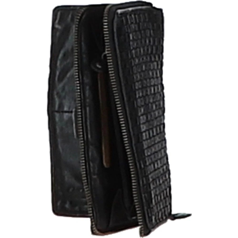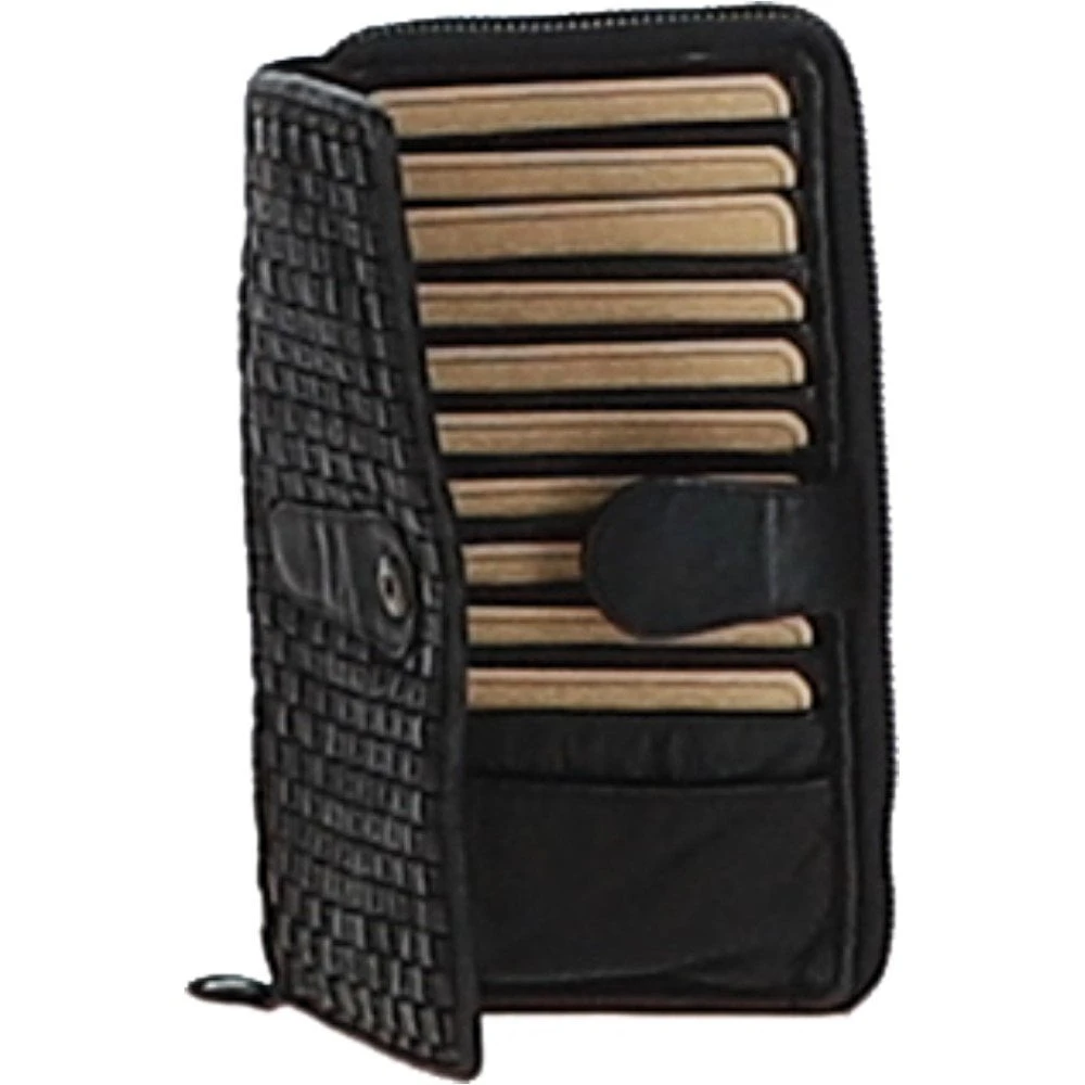 Vintage Woven Leather Zip Around Large 22 Card Coin Note Purse Black : D-84
