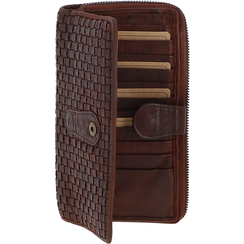 Vintage Woven Leather Zip Around Large 22 Card Coin Note Purse Cognac : D-84