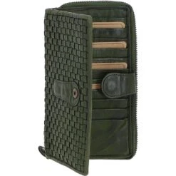 Vintage Woven Leather Zip Around Large 22 Card Coin Note Purse Green : D-84